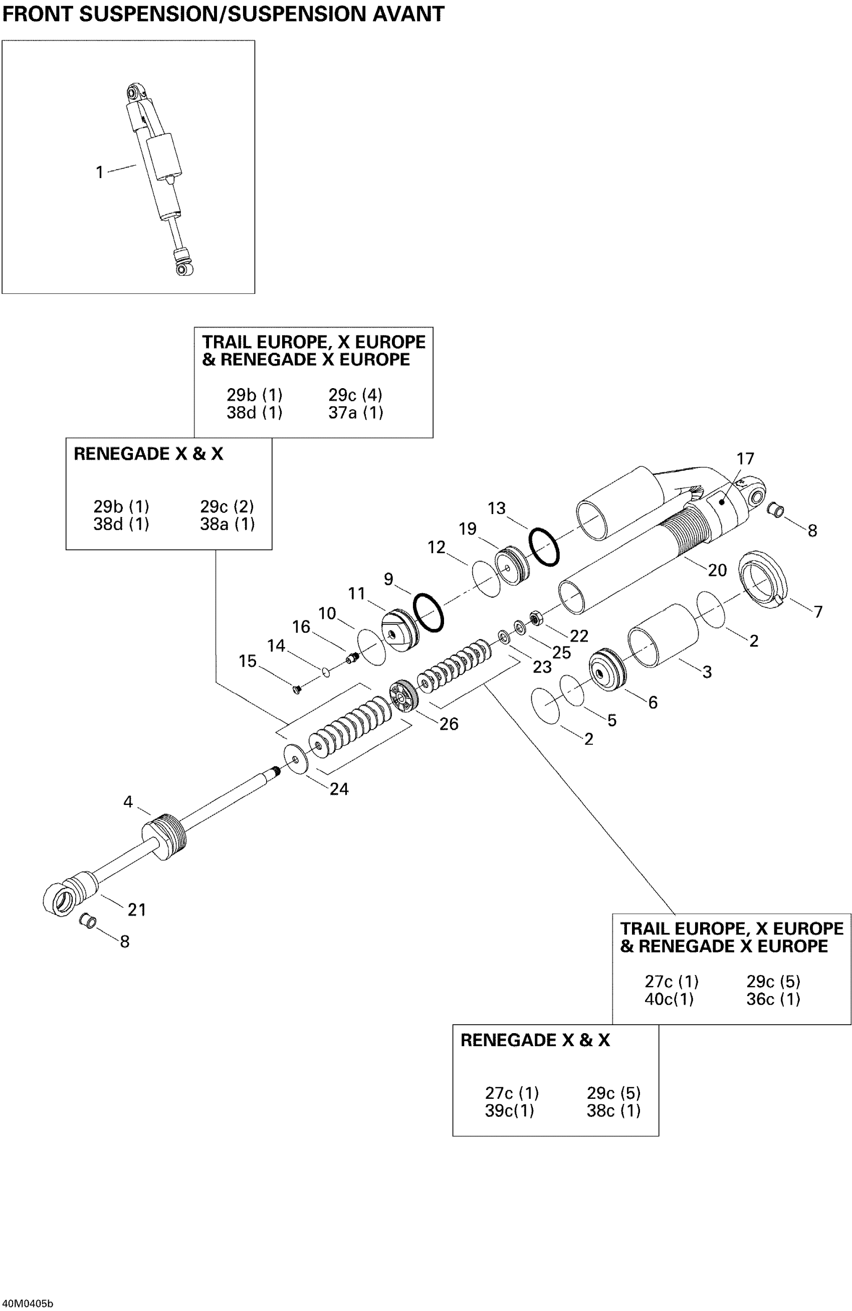 Ski-Doo MX Z 600 HO Renegade/Renegade X, 2004 Front Take Apart Shocks Diagram