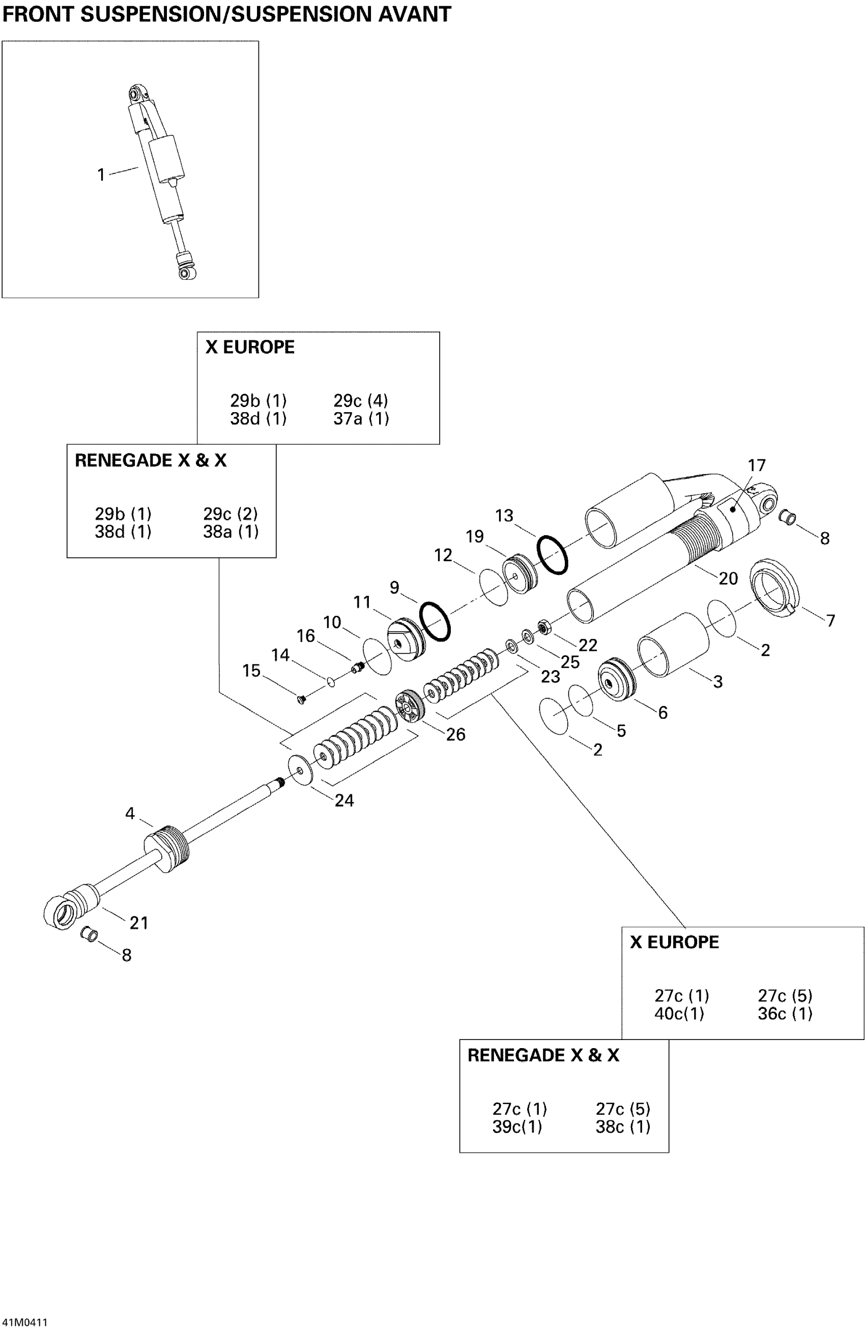 Ski-Doo MX Z 600 HO SDI, 2004 Front Take Apart Shocks Diagram