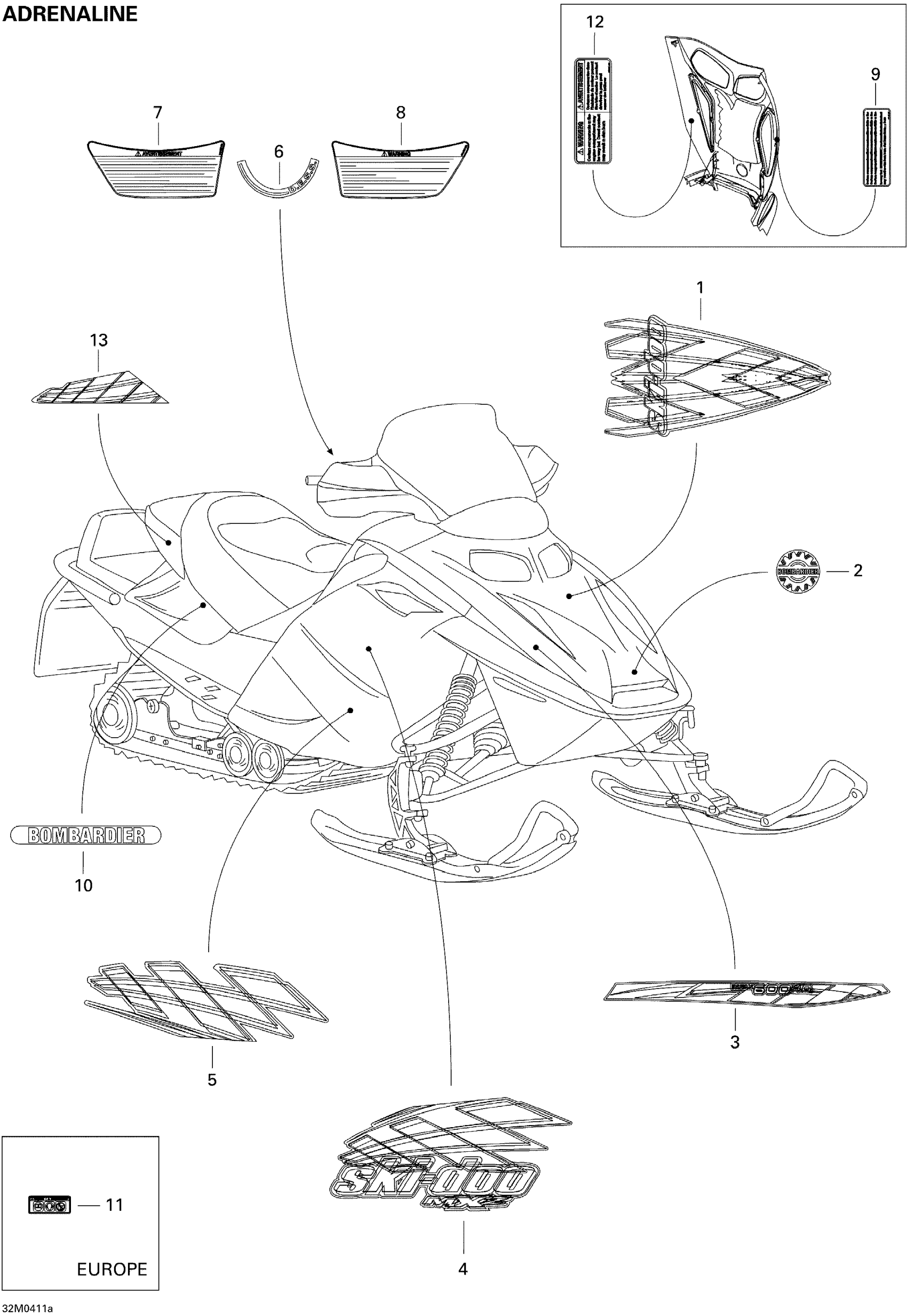 Ski-Doo MX Z 600 HO SDI, 2004 Decals (Adrenaline) Diagram