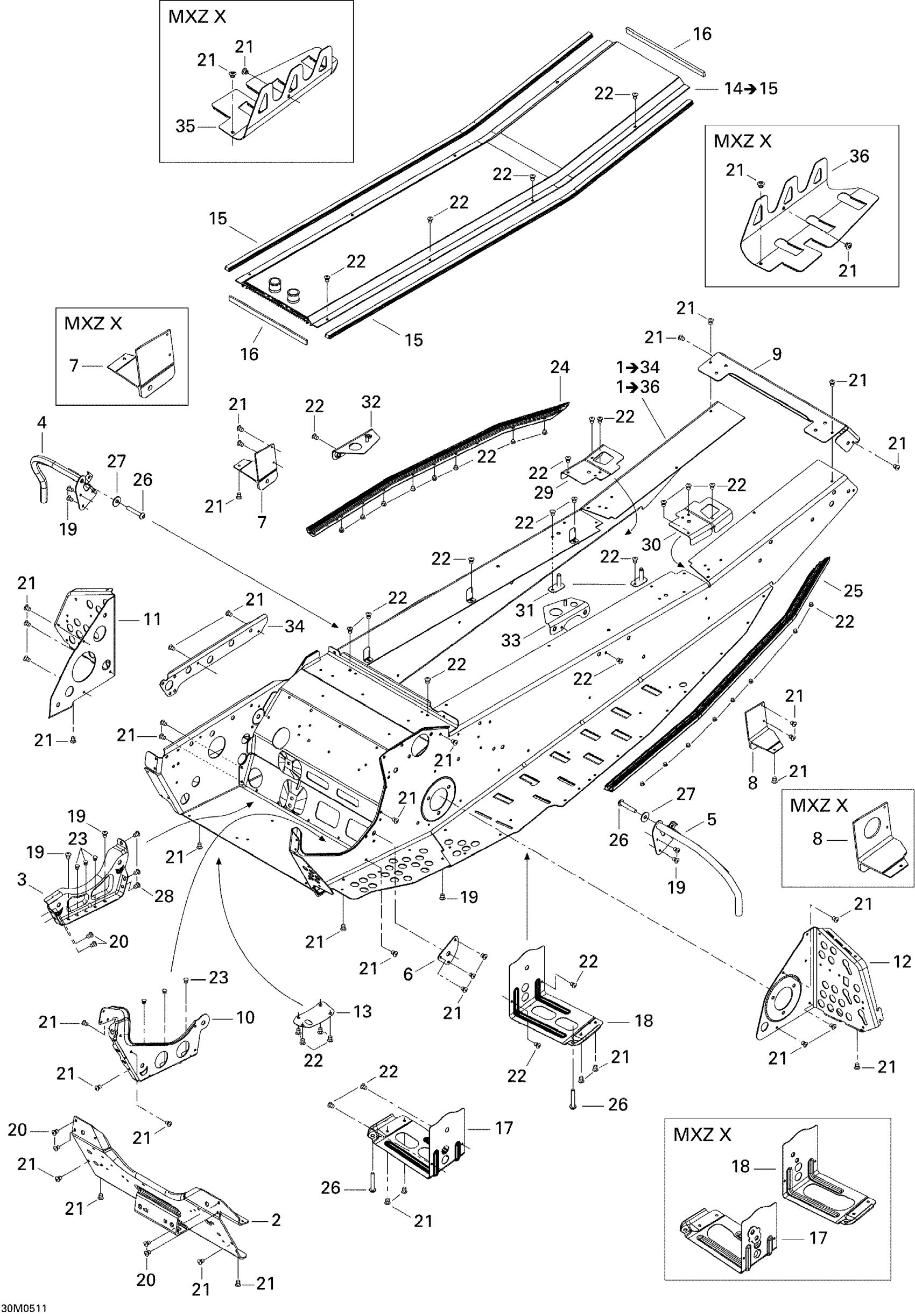 Ski-Doo MX Z 600 HO SDI Adrenaline & X, 2005 Frame Diagram