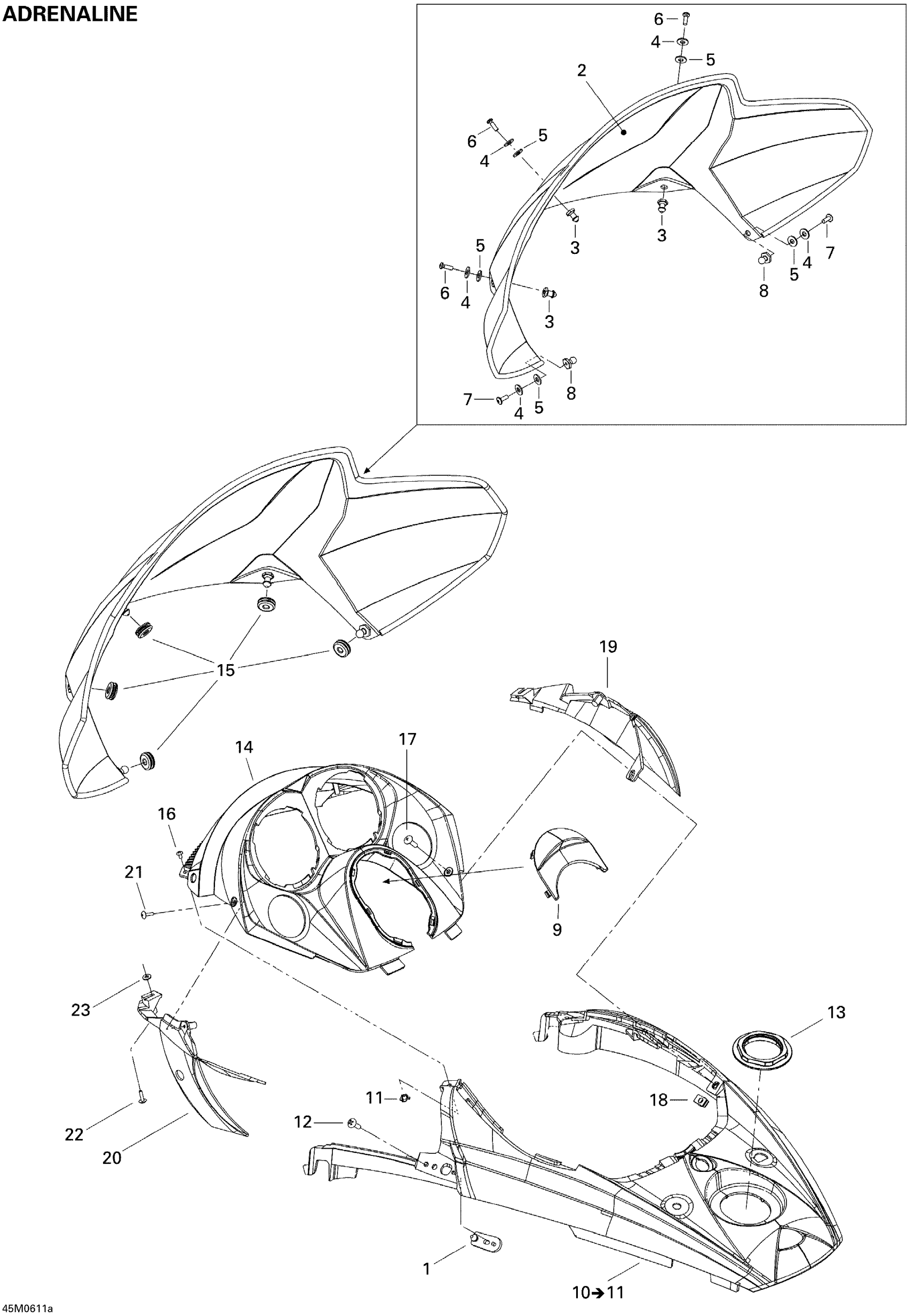 Ski-Doo MX Z 600 HO SDI Adrenaline & X, 2006 Windshield And Console ADR Diagram
