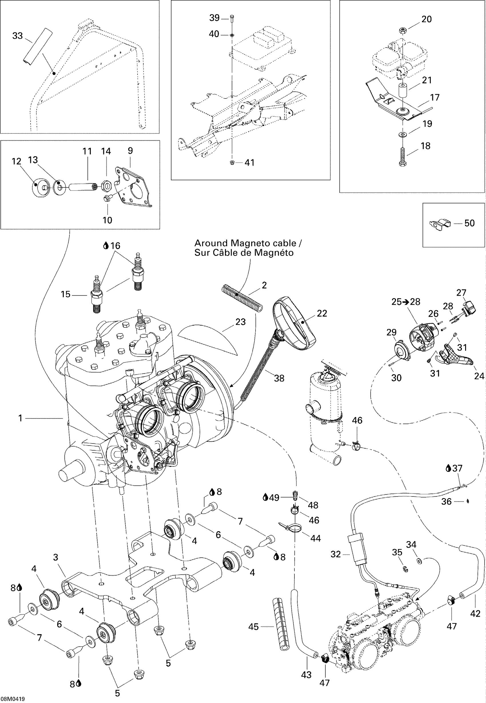 Ski-Doo MX Z 600 HO SDI Renegade, Early Intro, 2005 Engine Support Diagram