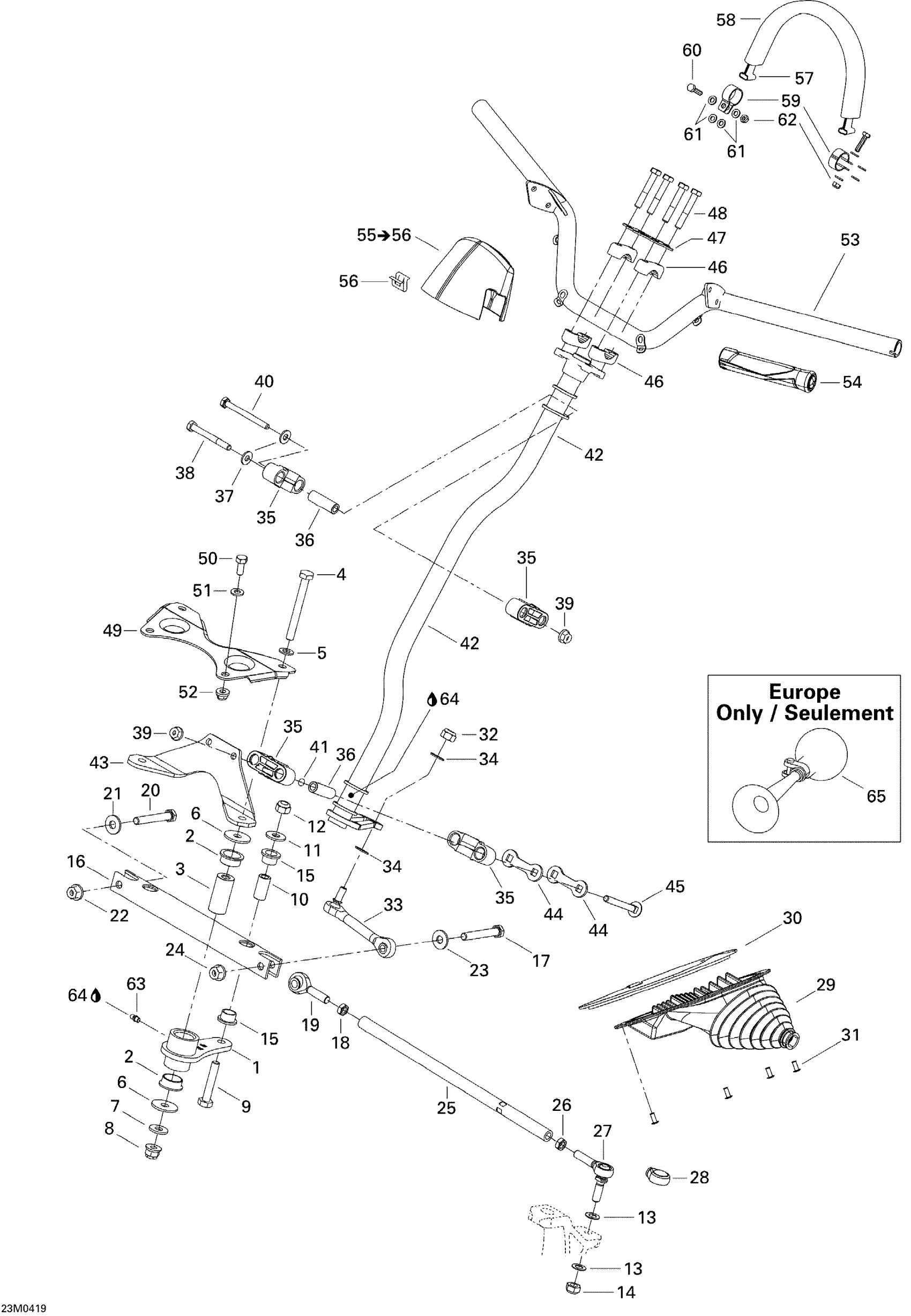 Ski-Doo MX Z 600 HO SDI Renegade, Early Intro, 2005 Steering System Diagram