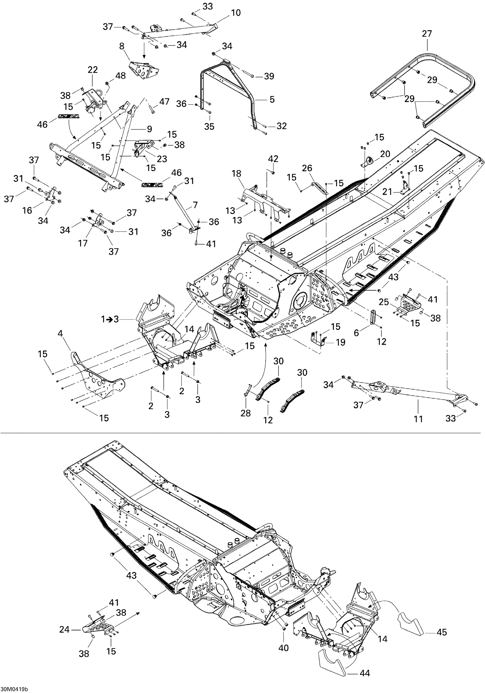 Ski-Doo MX Z 600 HO SDI Renegade, Early Intro, 2005 Frame System Diagram