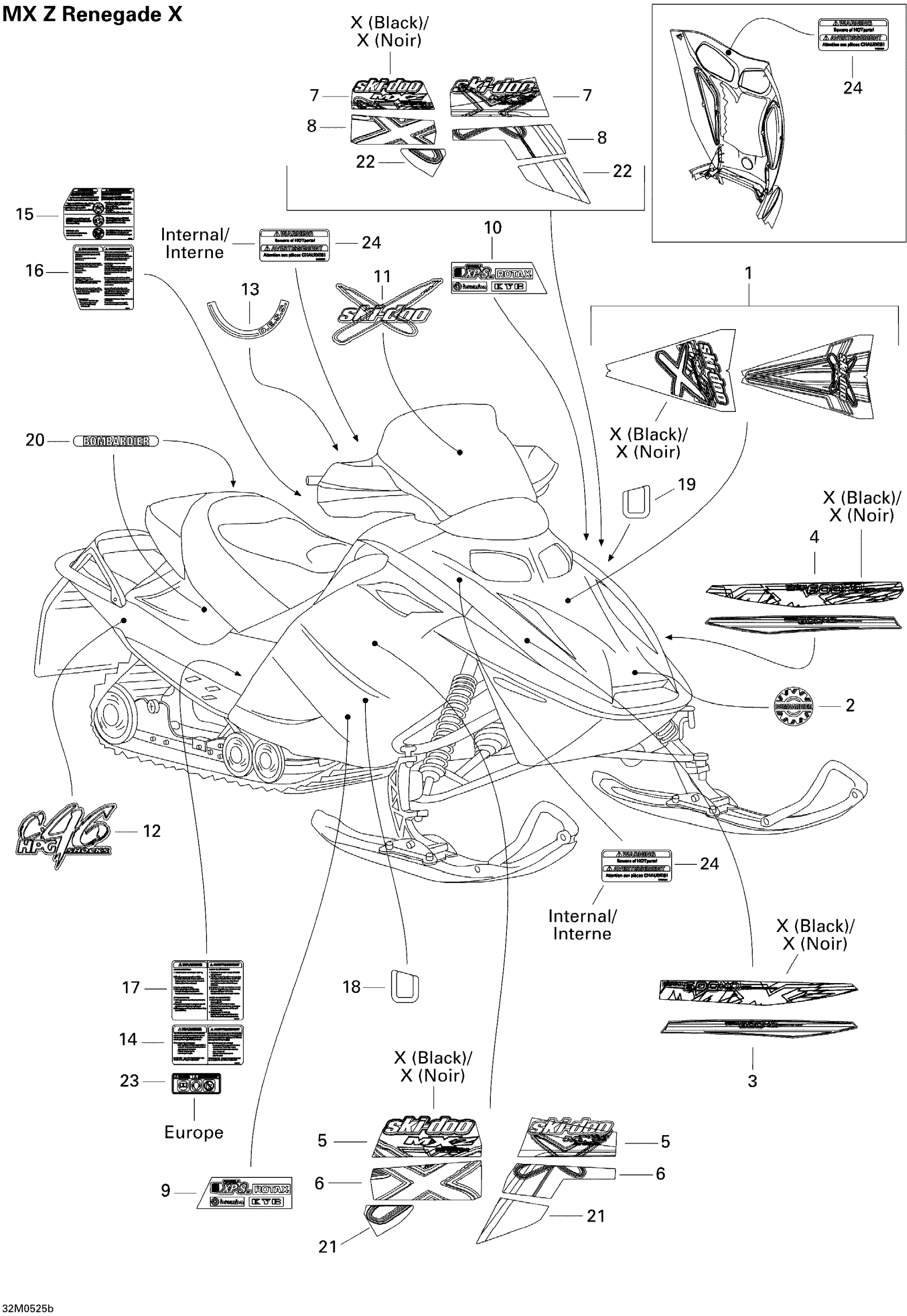 Ski-Doo MX Z 600 HO SDI Renegade & Renegade X, 2005 Decals Renegade X Diagram