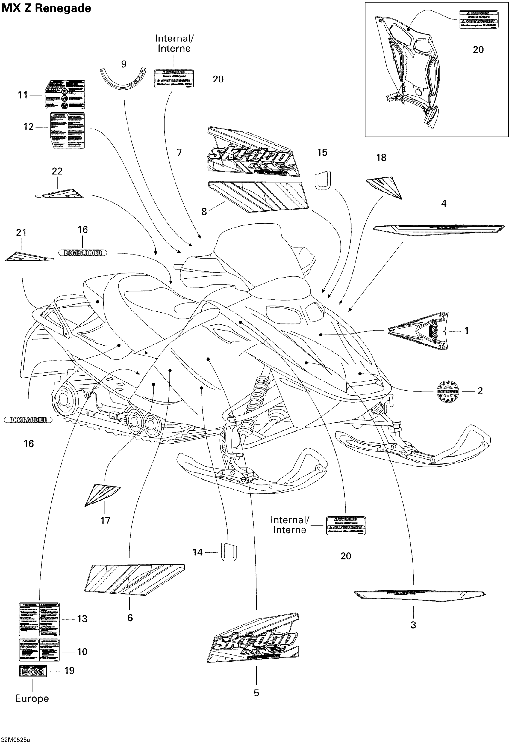 Ski-Doo MX Z 600 HO SDI Renegade & Renegade X, 2005 Decals Renegade Diagram