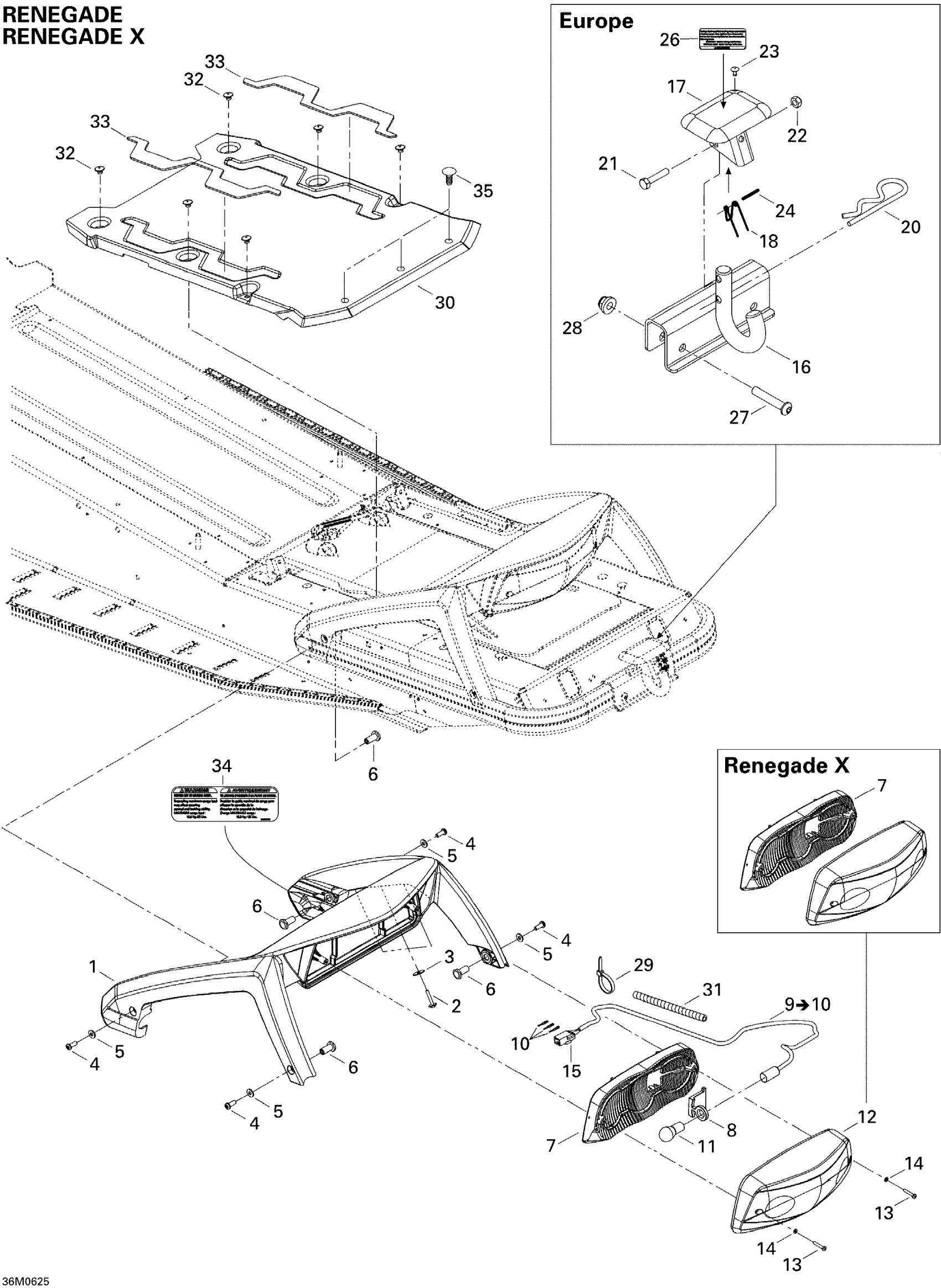 Ski-Doo MX Z 600 HO SDI Renegade & Renegade X, 2006 Luggage Rack Diagram