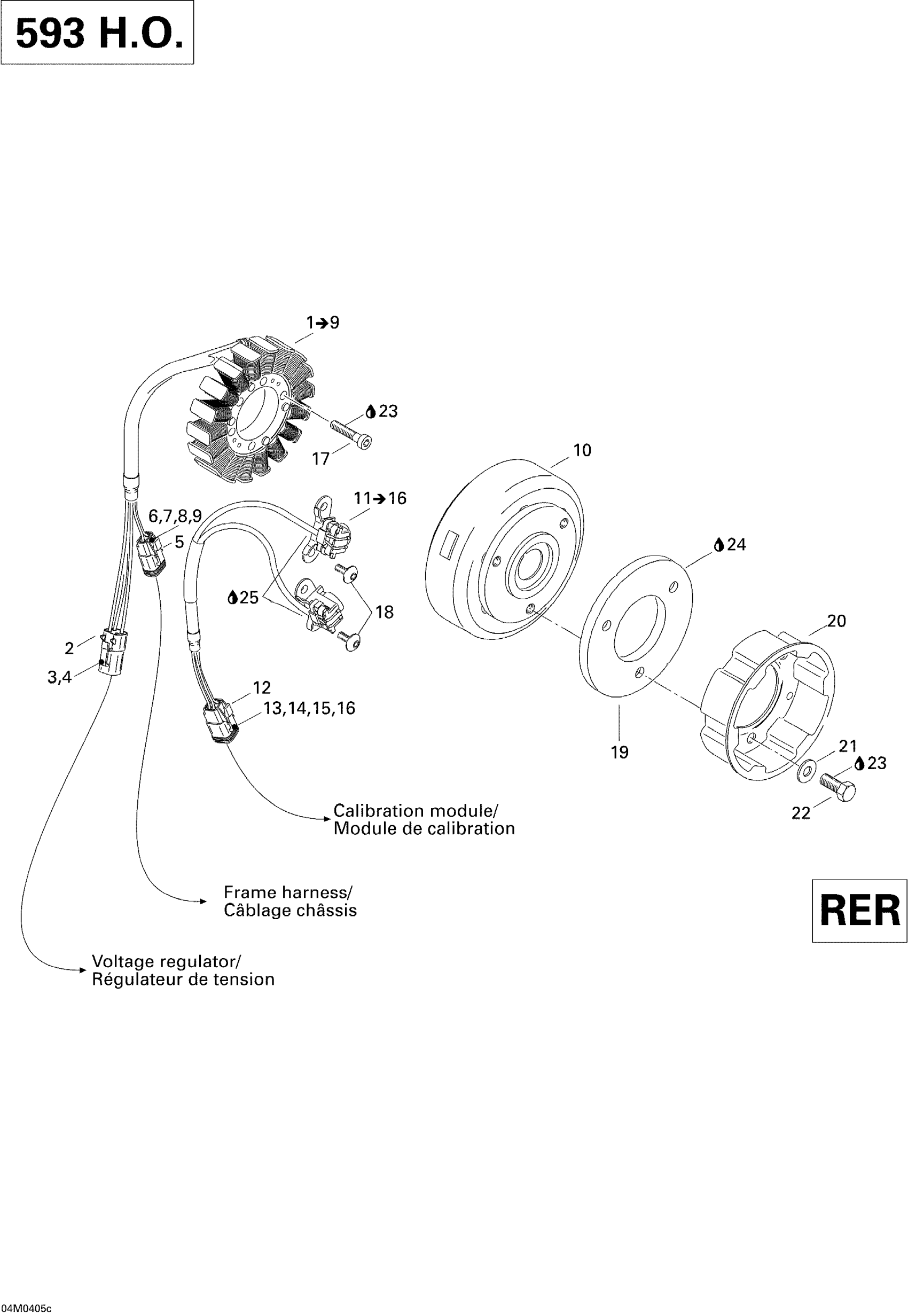 Magneto (12V, 360W) (593 HO) (trail (r), Adrenaline, Renegade, Renegade X & X)