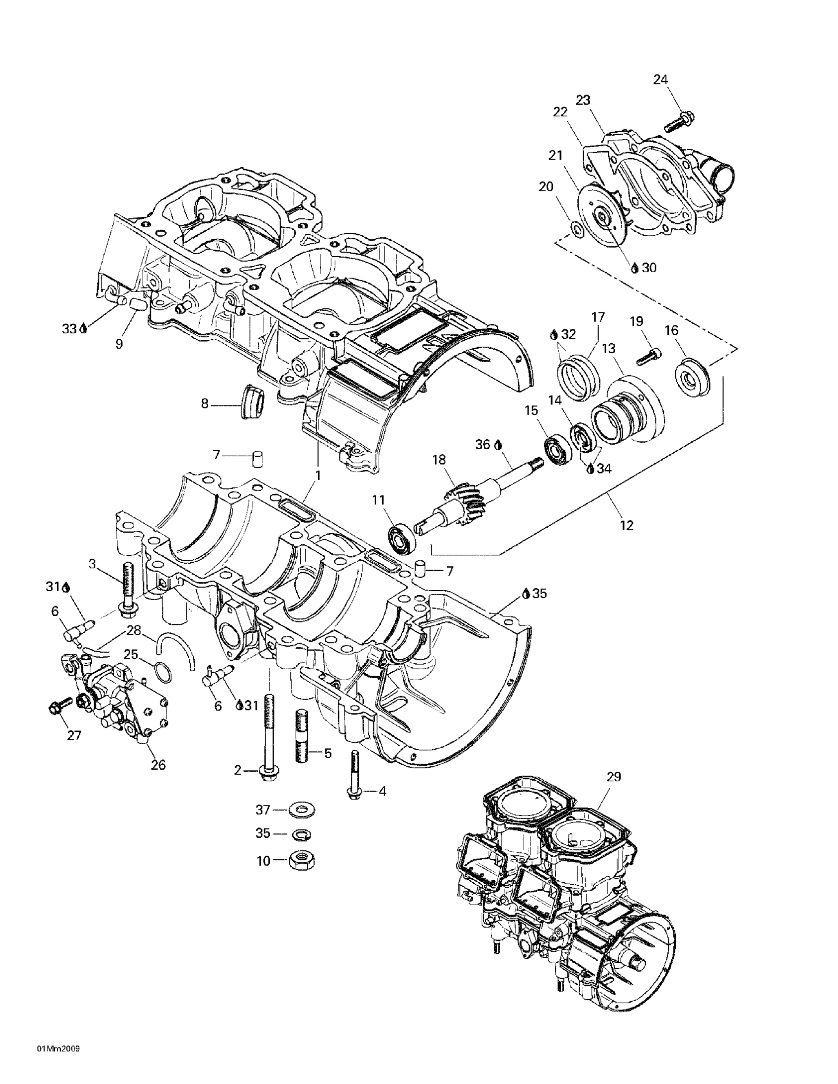 Ski-Doo MX Z 600 SB Black, 2000 01- Crankcase, Water Pump And Oil Pump Diagram
