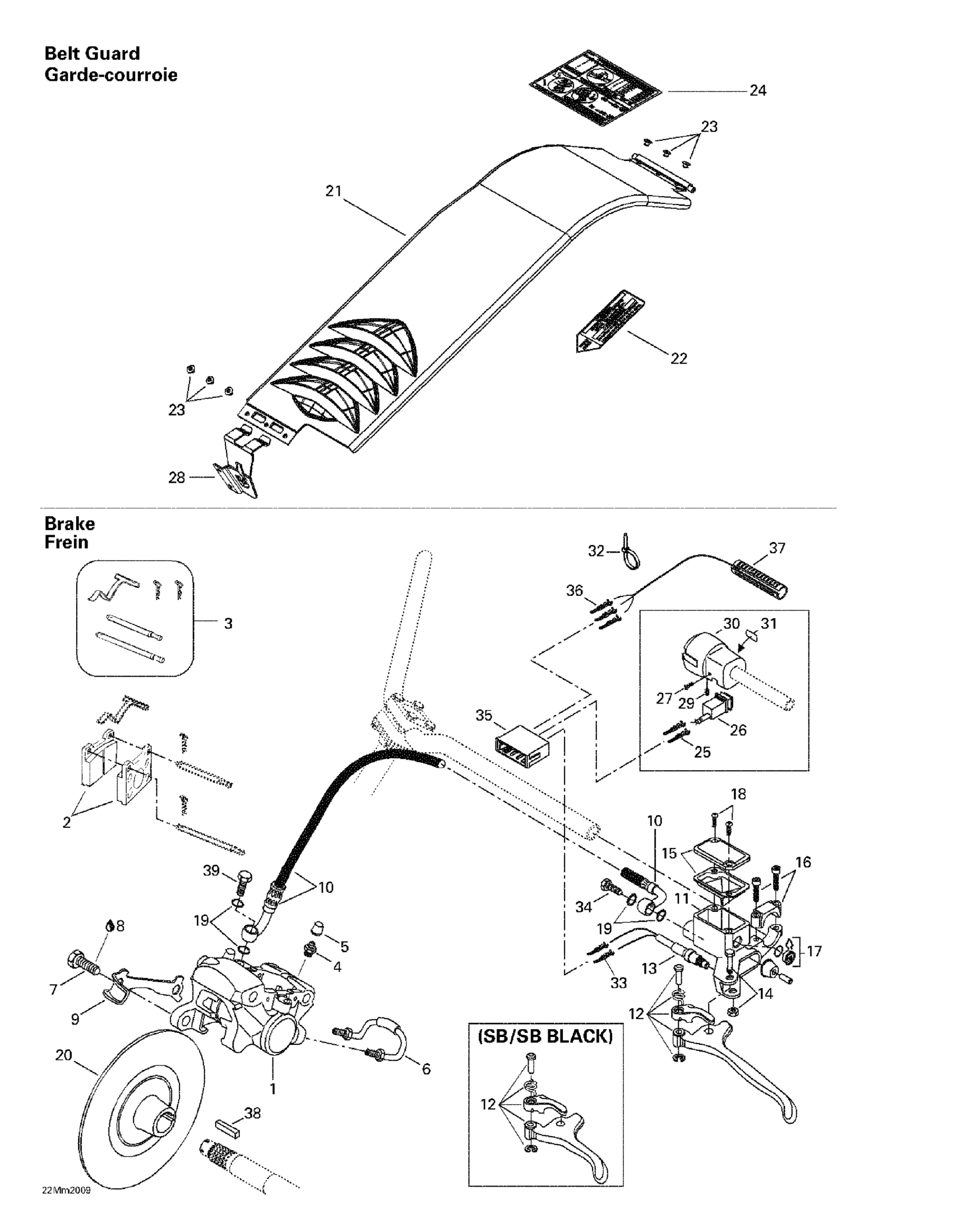 Ski-Doo MX Z 600 SB Black, 2000 Hydraulic Brake And Belt Guard Diagram