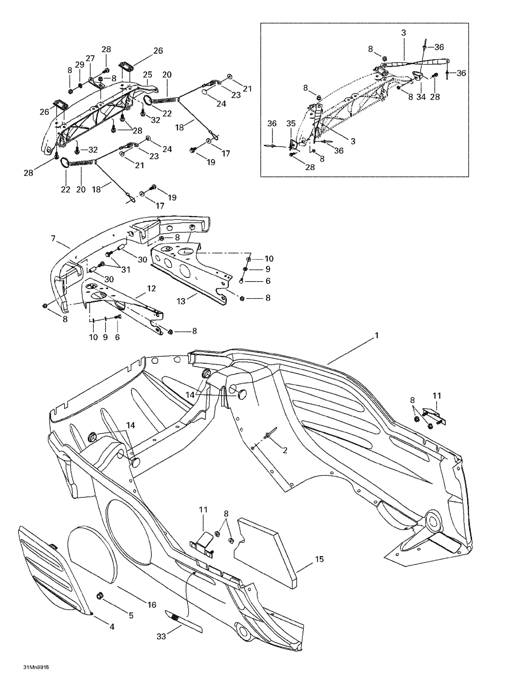 Ski-Doo MX Z 700, 1999 Bottom Pan Diagram