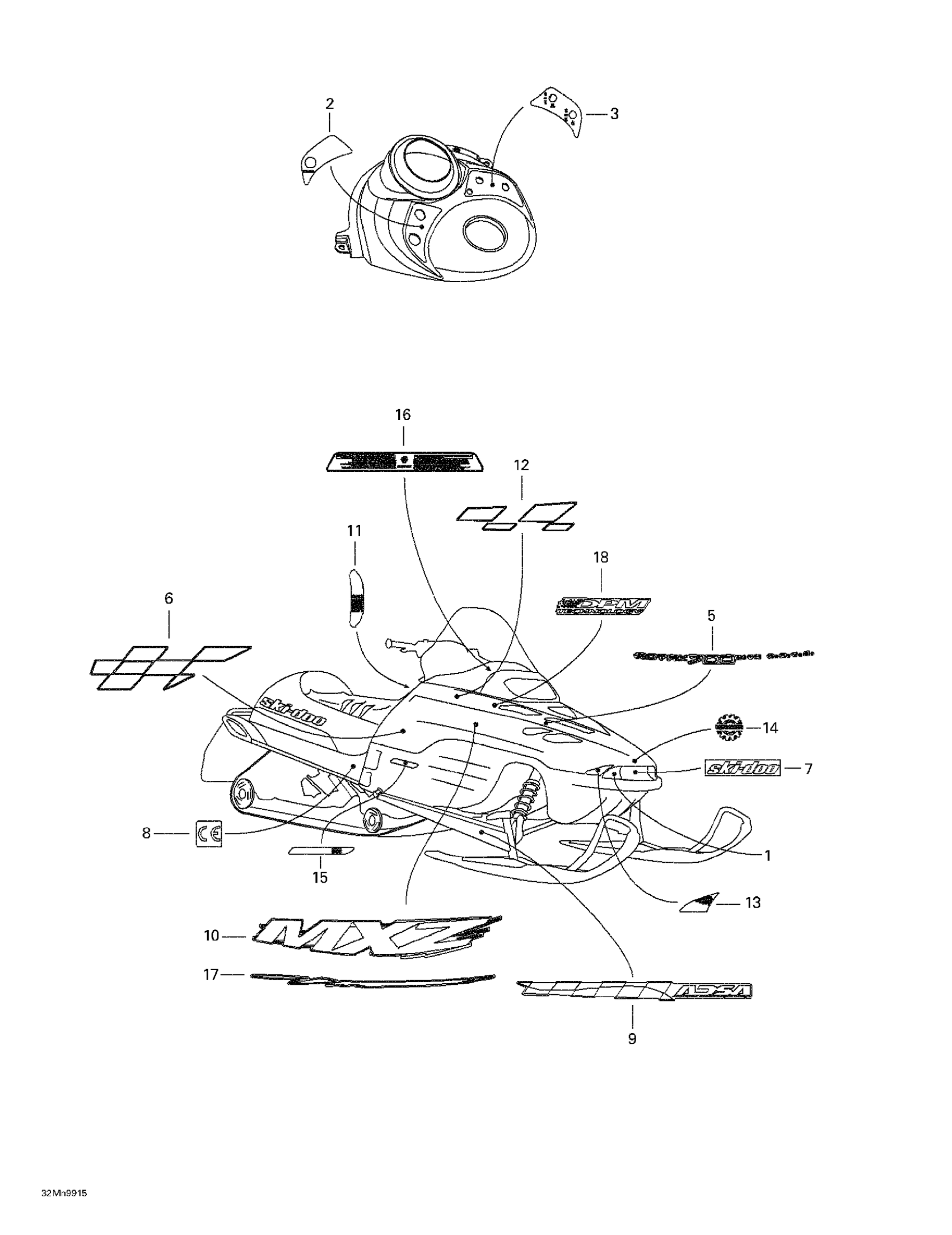 Ski-Doo MX Z 700, 1999 Decals Diagram