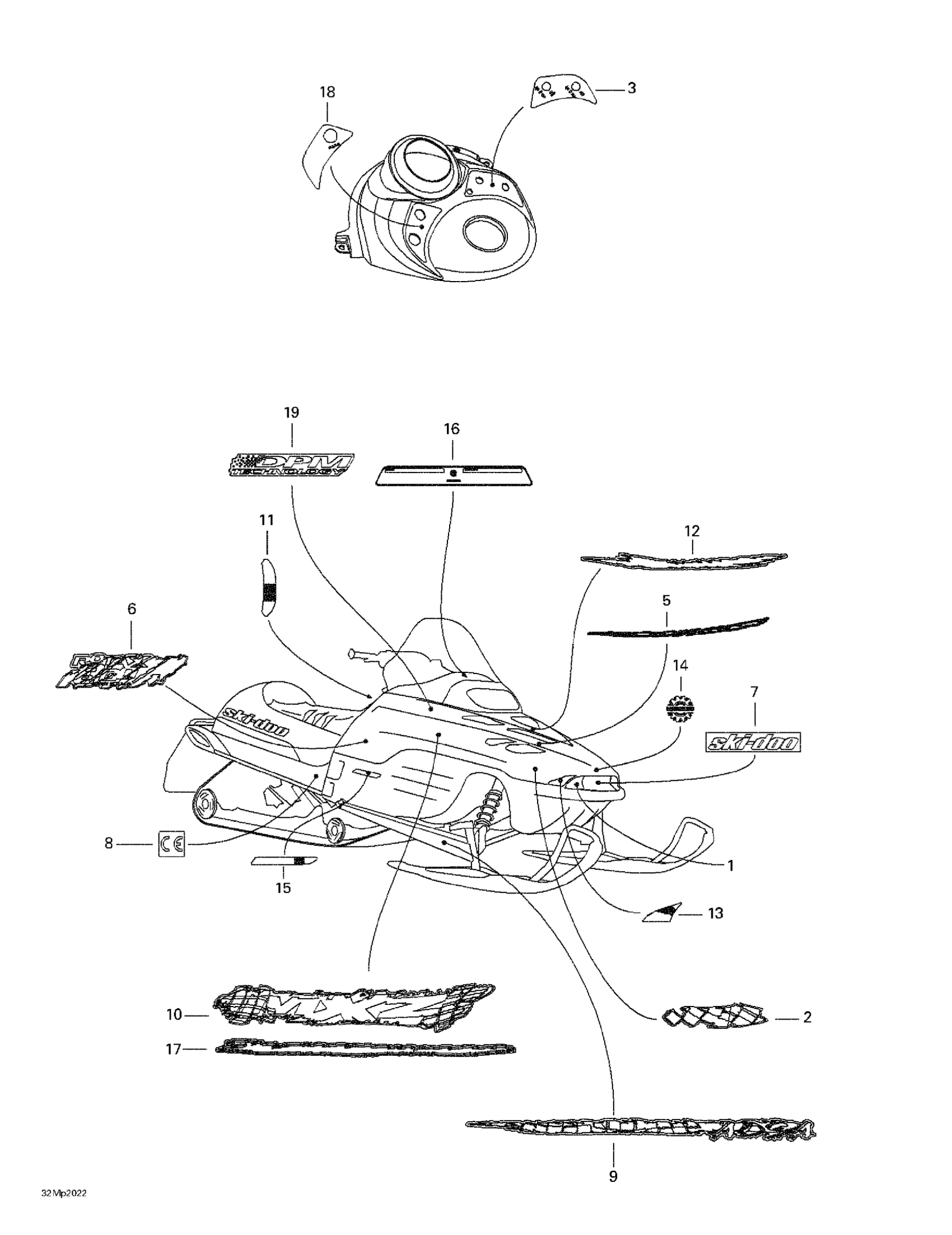 Ski-Doo MX Z 800, 2000 Decals Diagram