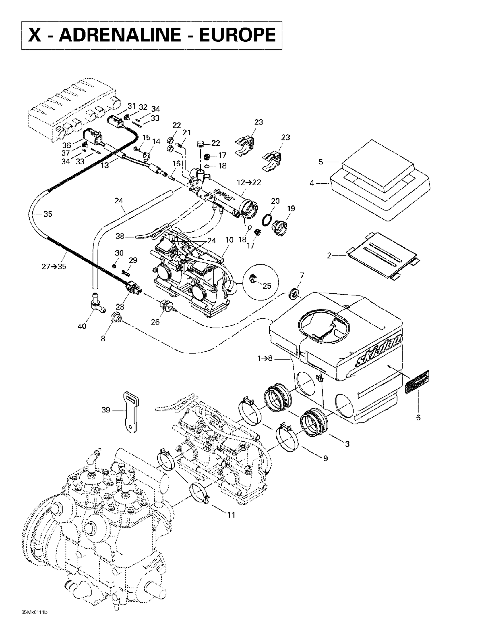 Air Intake Ass'y | Includes 1 - 8. (X-ADRENALINE-EUROPE)