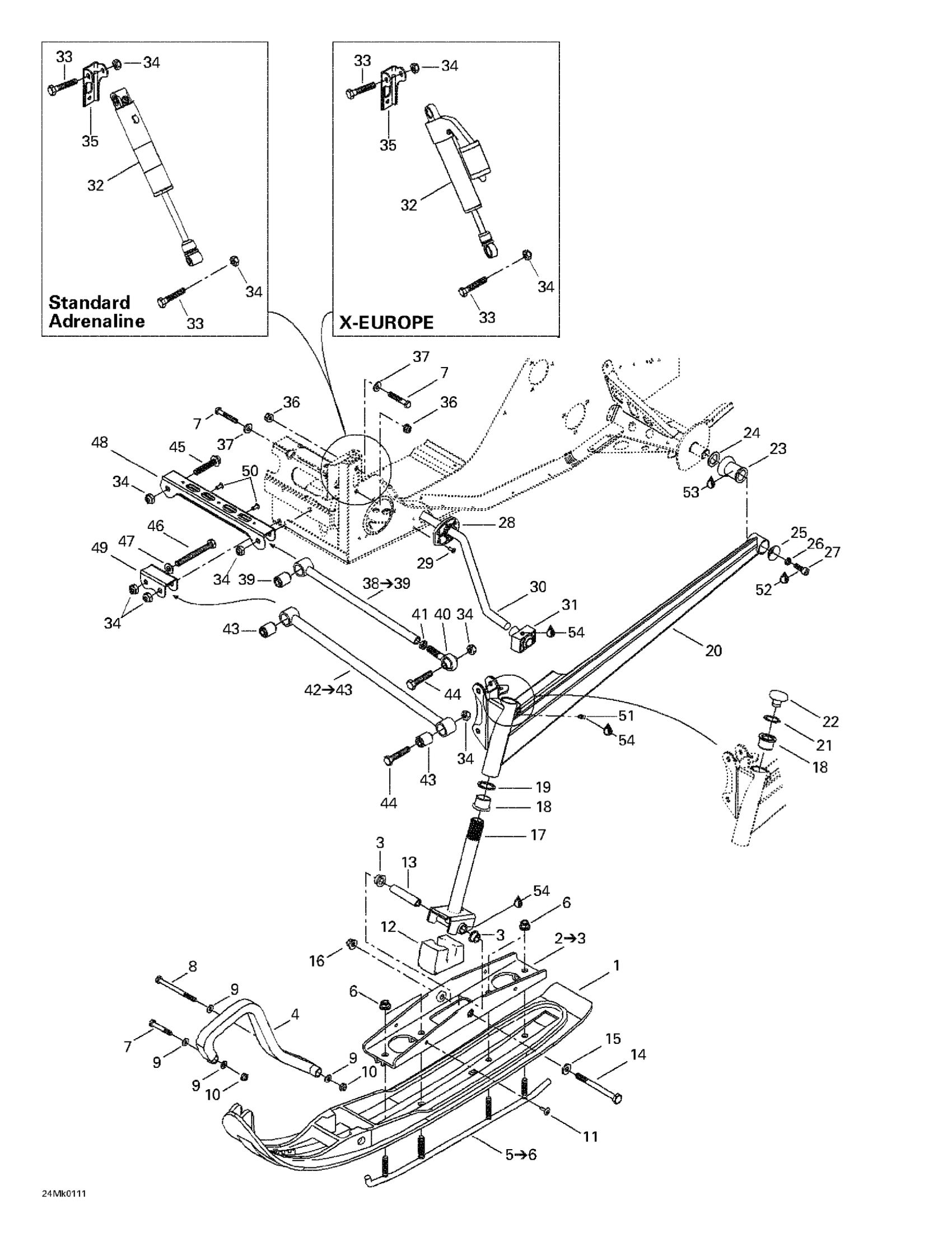 Ski-Doo MX Z 800, 2001 Front Suspension And Ski Diagram
