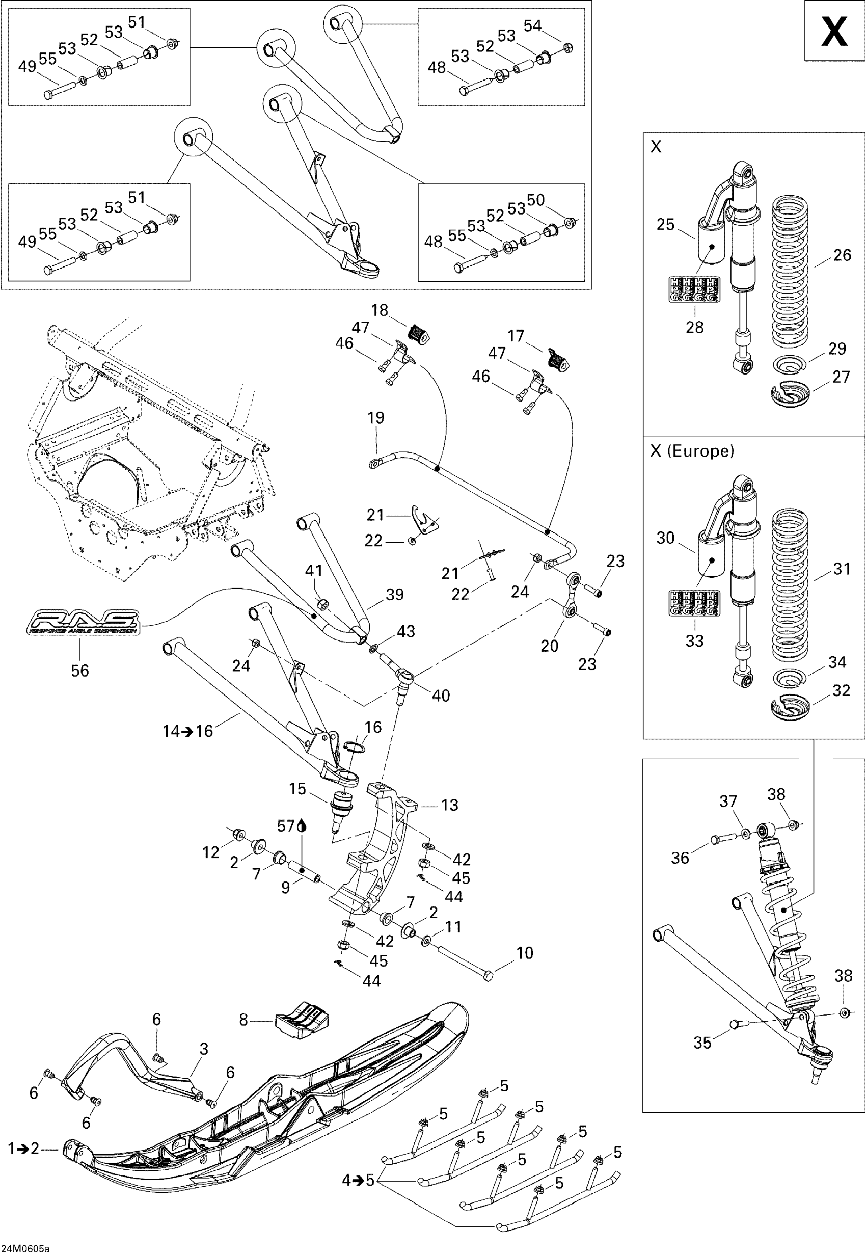 Ski-Doo MX Z 800 HO Adrenaline & X, 2006 Front Suspension And Ski X Diagram