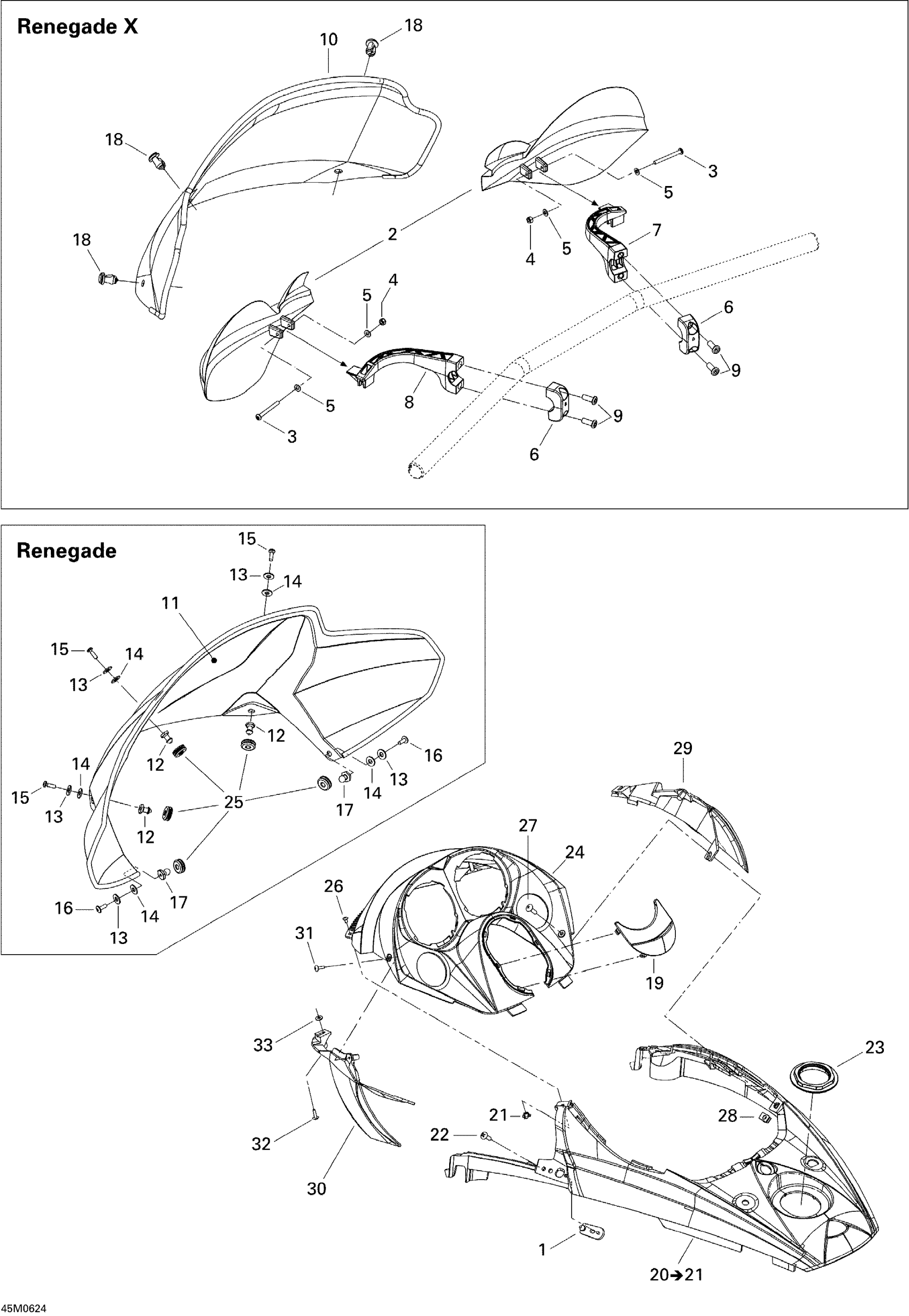 Ski-Doo MX Z 800 HO Renegade & Renegade X, 2006 Windshield And Console Diagram