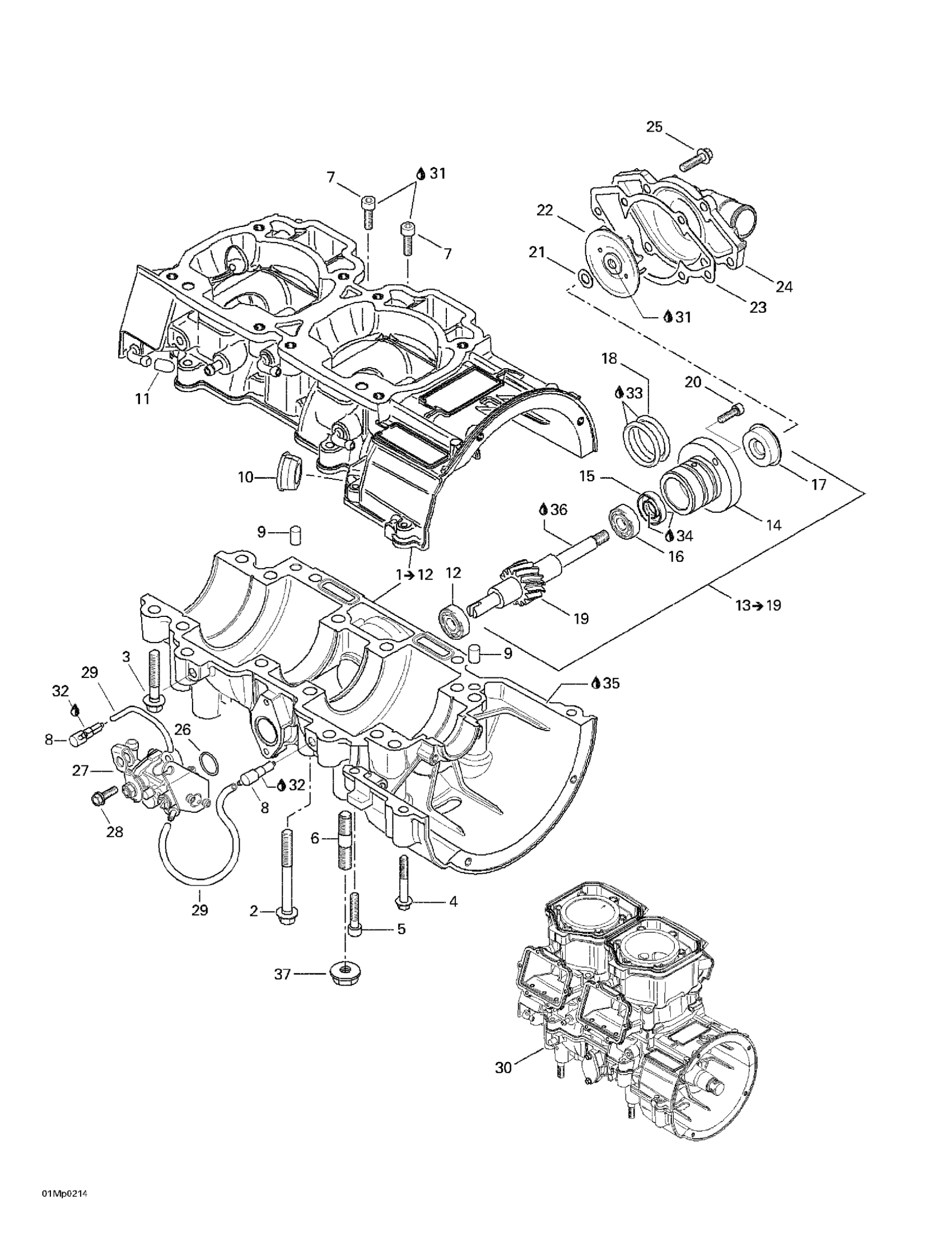Ski-Doo MX Z 800 Rev, 2002 Crankcase, Water Pump And Oil Pump Diagram