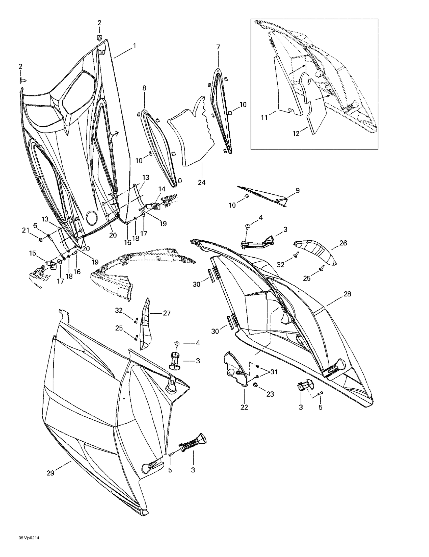 Ski-Doo MX Z 800 Rev, 2002 Hood Diagram
