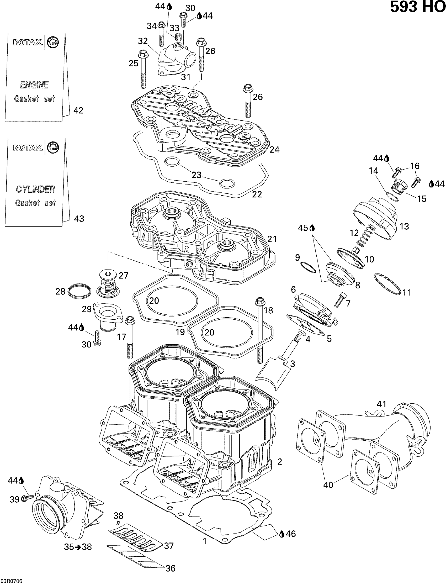 Ski-Doo MX Z Adrenaline 600 HO, 2007 Cylinder, Exhaust Manifold And Reed Valve Diagram