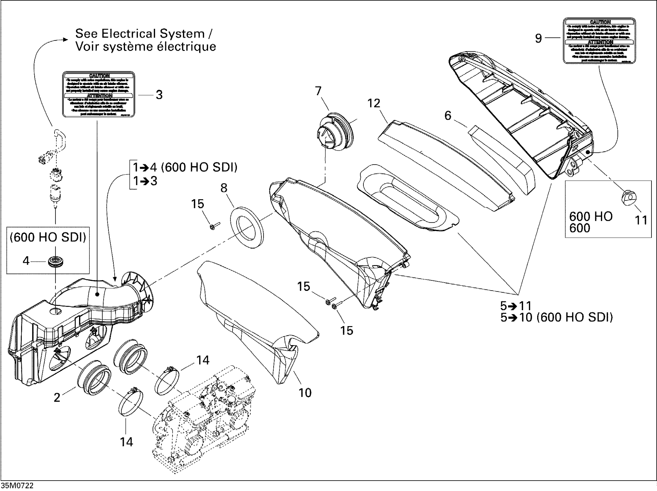 Ski-Doo MX Z Adrenaline 600 HO SDI, 2007 Air Intake System 600 HO SDI Diagram