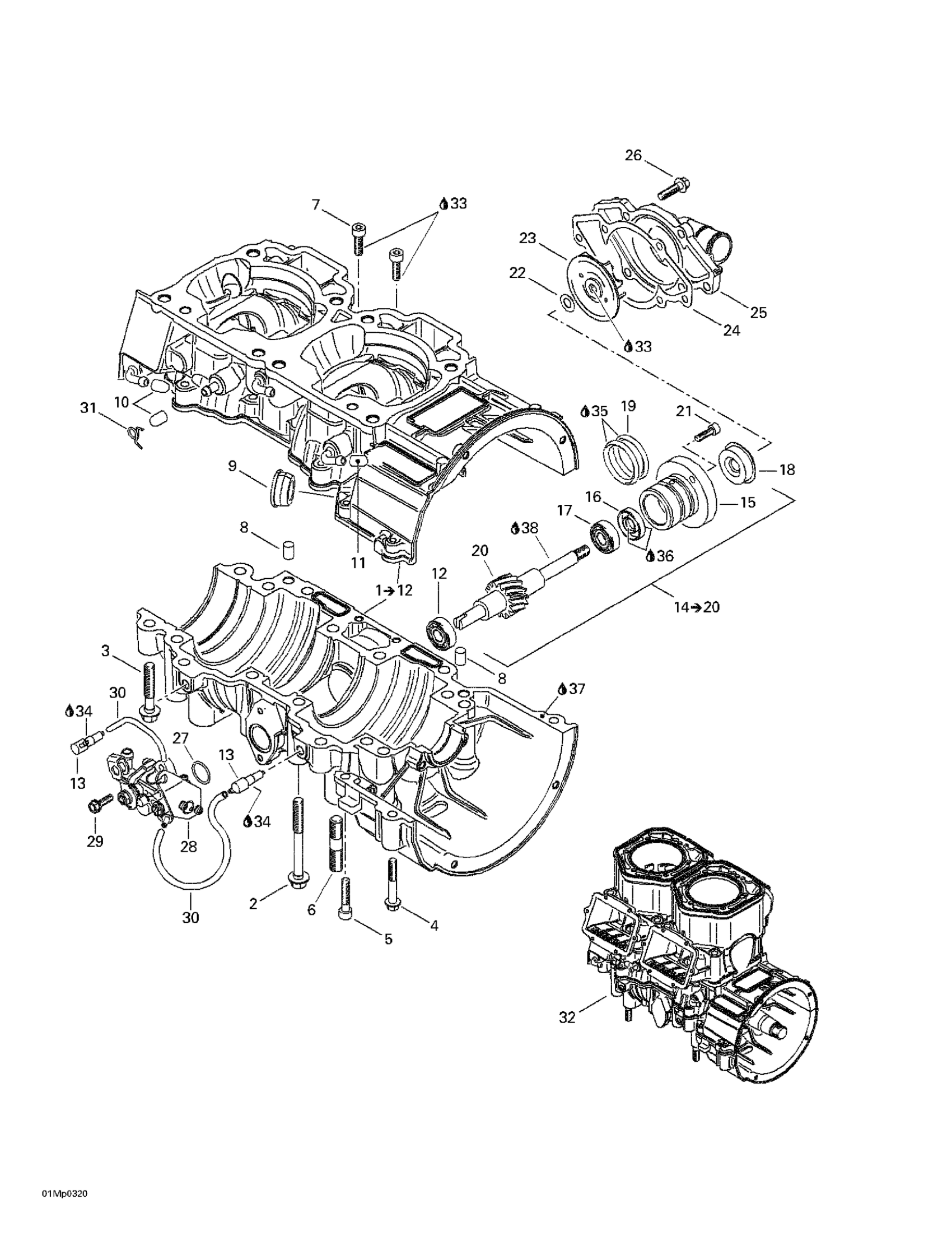 Ski-Doo MX Z Blair Morgan Special Edition, 2003 Crankcase, Water Pump And Oil Pump Diagram