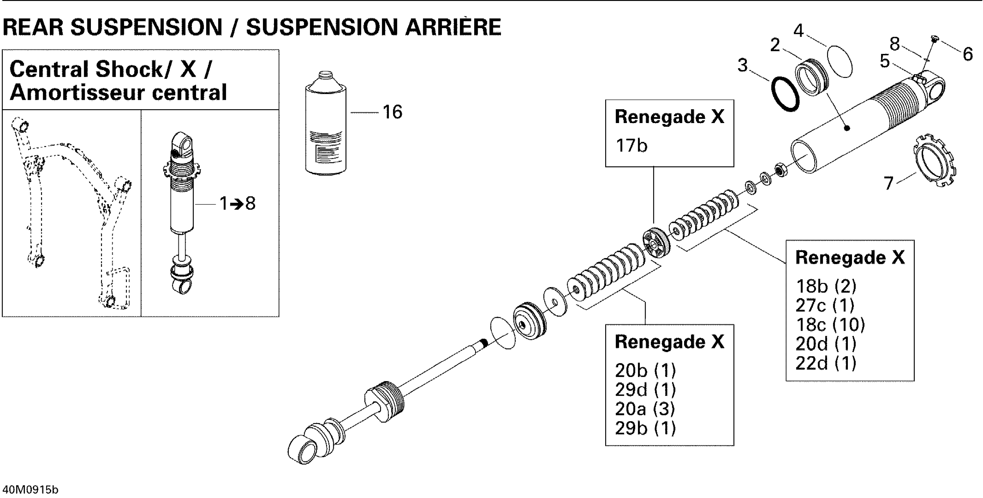 Ski-Doo MX Z Renegade X 1200 4-TEC, 2009 Take Apart Shock, Center X Diagram