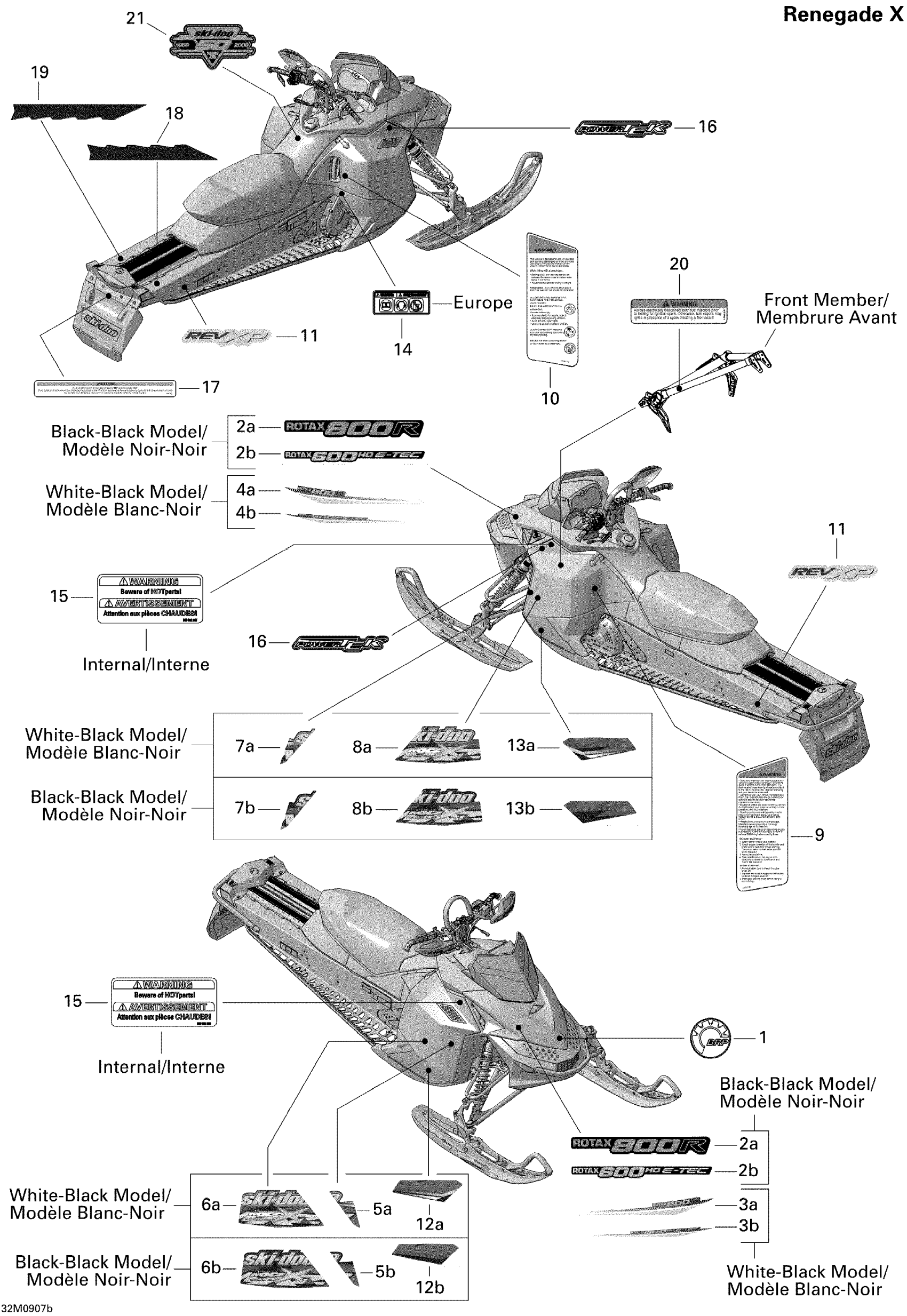 Ski-Doo MX Z Renegade X 600 H.O. E-TEC, 2009 Decals Renegade X 600HO Diagram