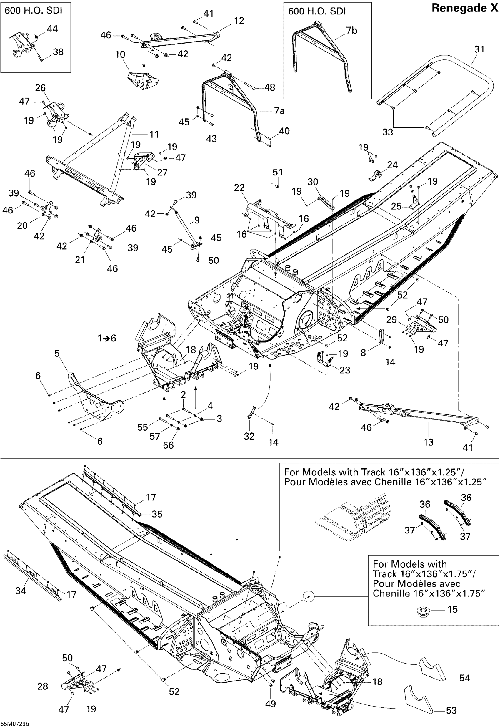 Ski-Doo MX Z Renegade X 600 HO SDI, 2007 Frame and Components RENX 600 Diagram