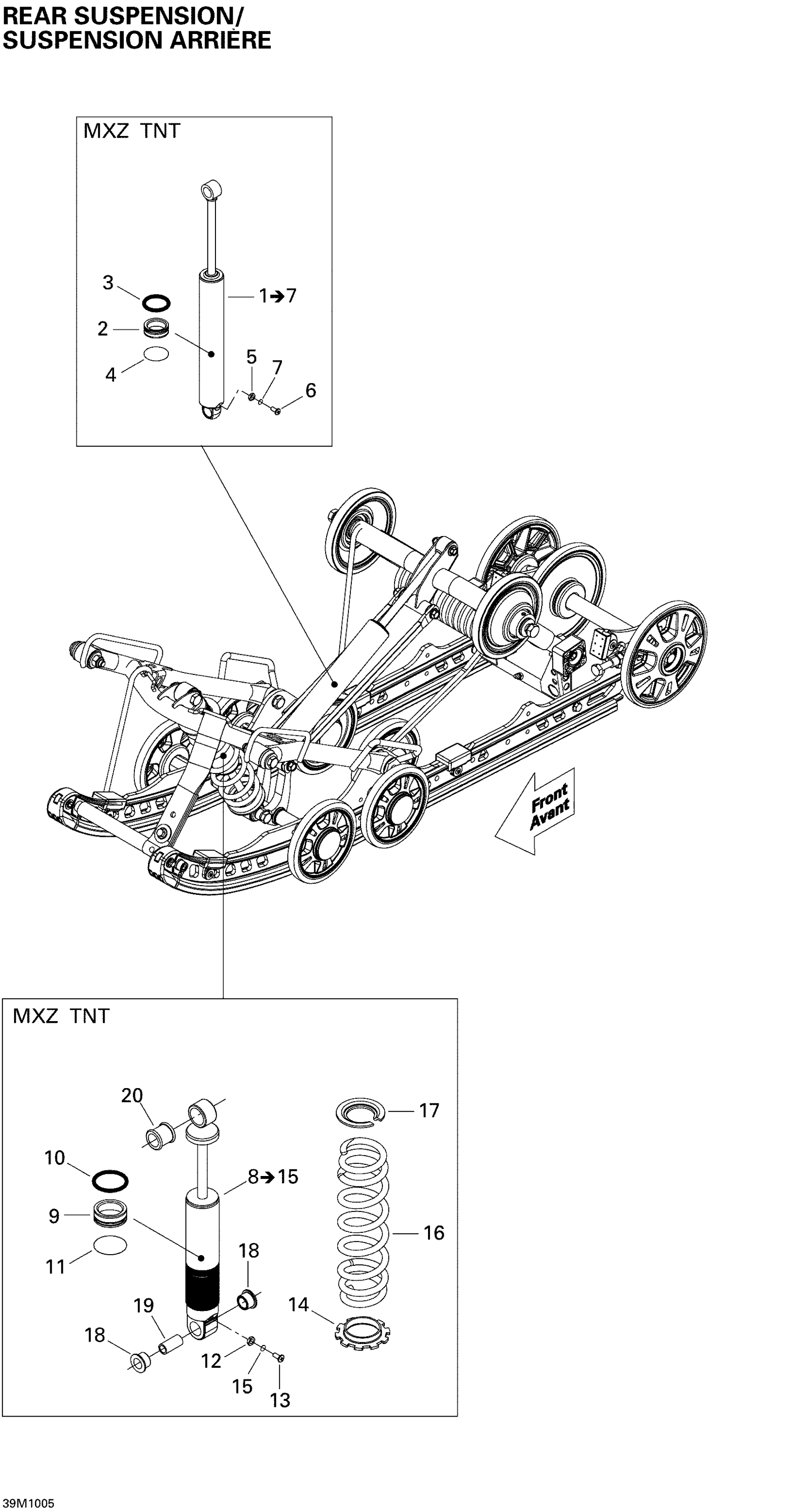 Ski-Doo MX Z TNT 600, 2010 Rear Suspension Shocks Diagram