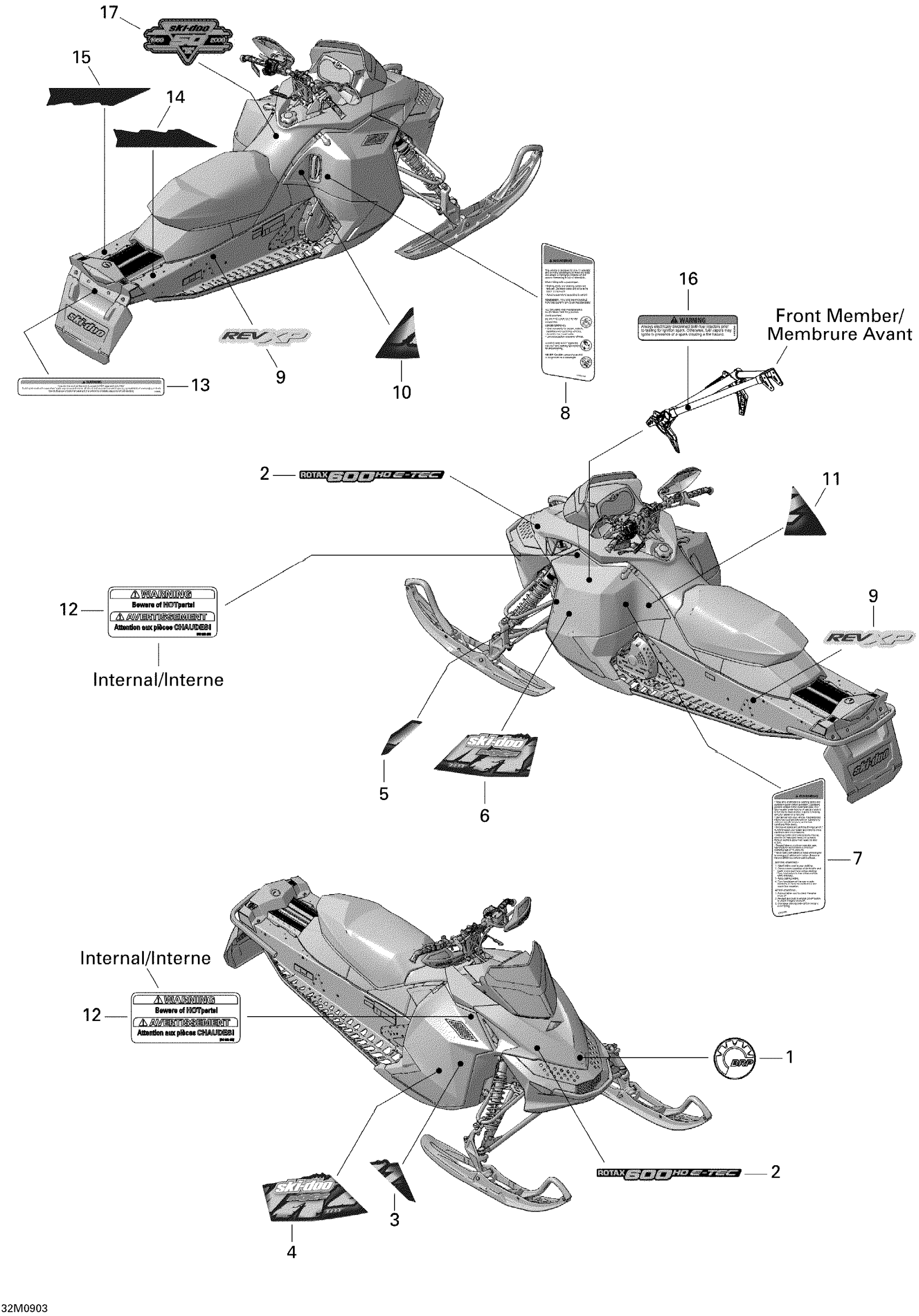 Ski-Doo MX Z TNT 600 H.O. E-TEC, 2009 Decals Diagram