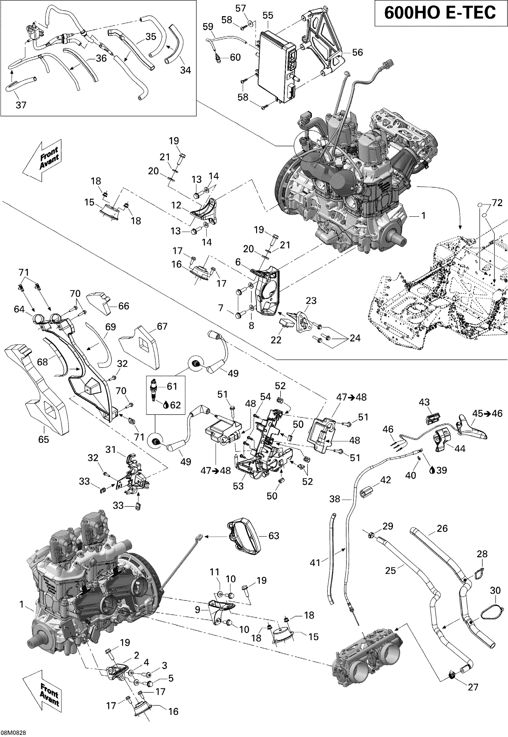 Ski-Doo MX Z TNT 600 H.O. E-TEC (MJ9A, Early Edition), 2009 Engine And Engine Support Diagram