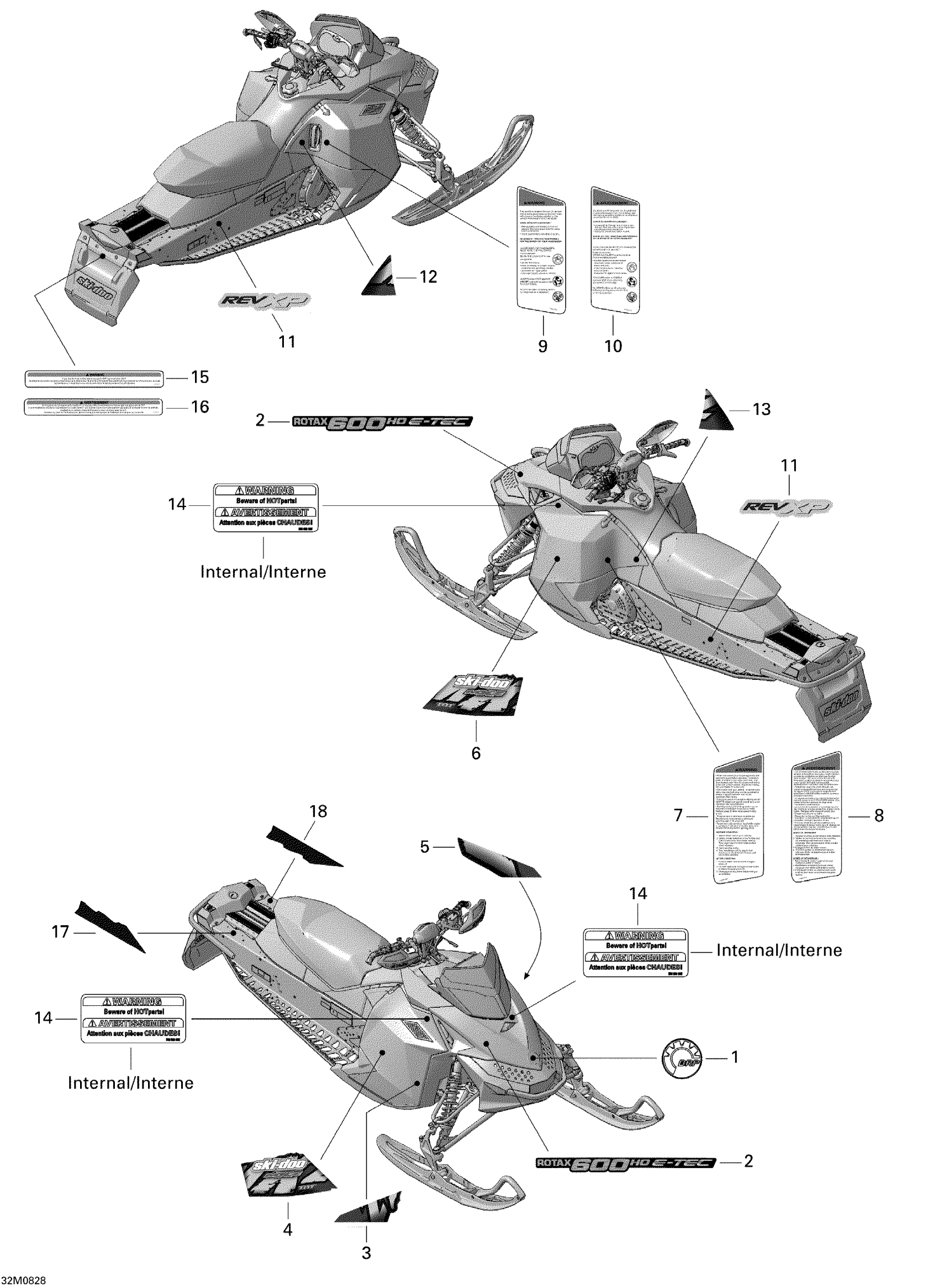 Ski-Doo MX Z TNT 600 H.O. E-TEC (MJ9A, Early Edition), 2009 Decals Diagram
