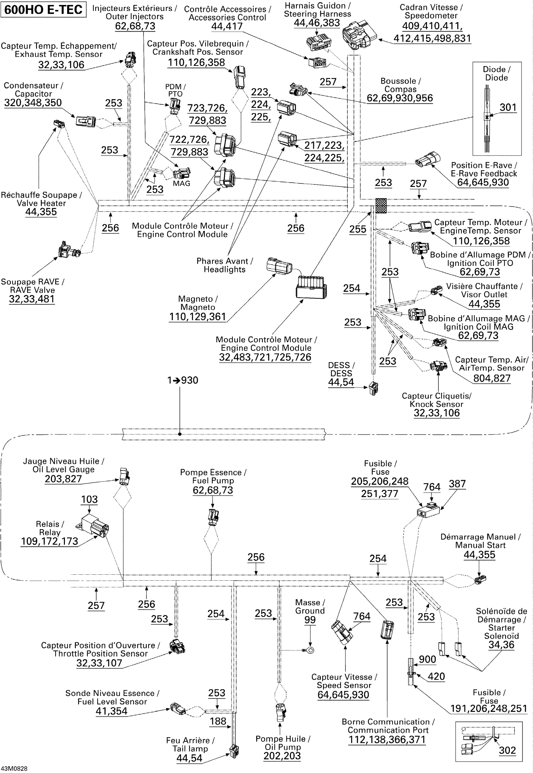 Ski-Doo MX Z TNT 600 H.O. E-TEC (MJ9A, Early Edition), 2009 Electrical Harness Diagram