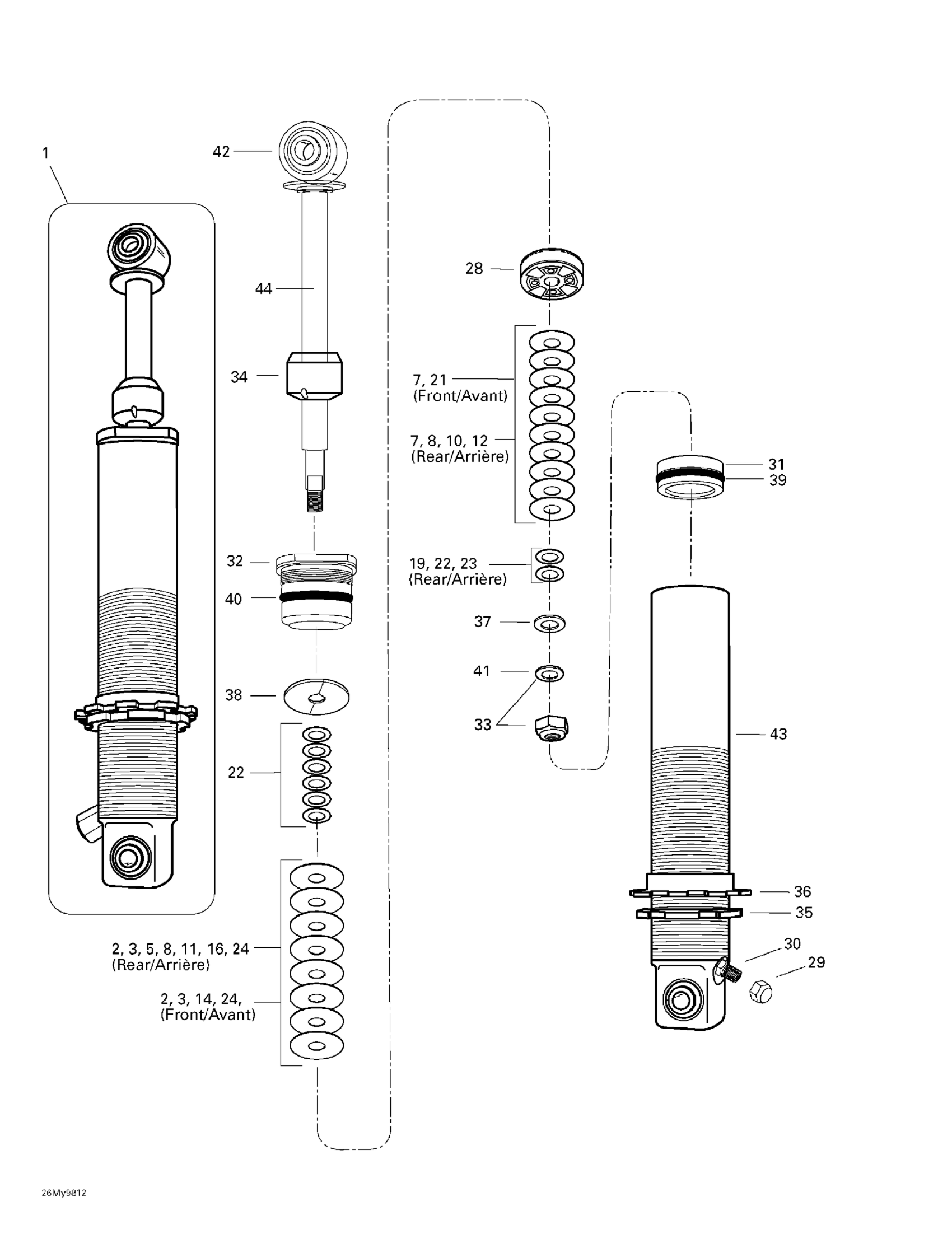 Ski-Doo MX Z X 400 LC, 1998 Front And Rear Take Apart Shocks Diagram