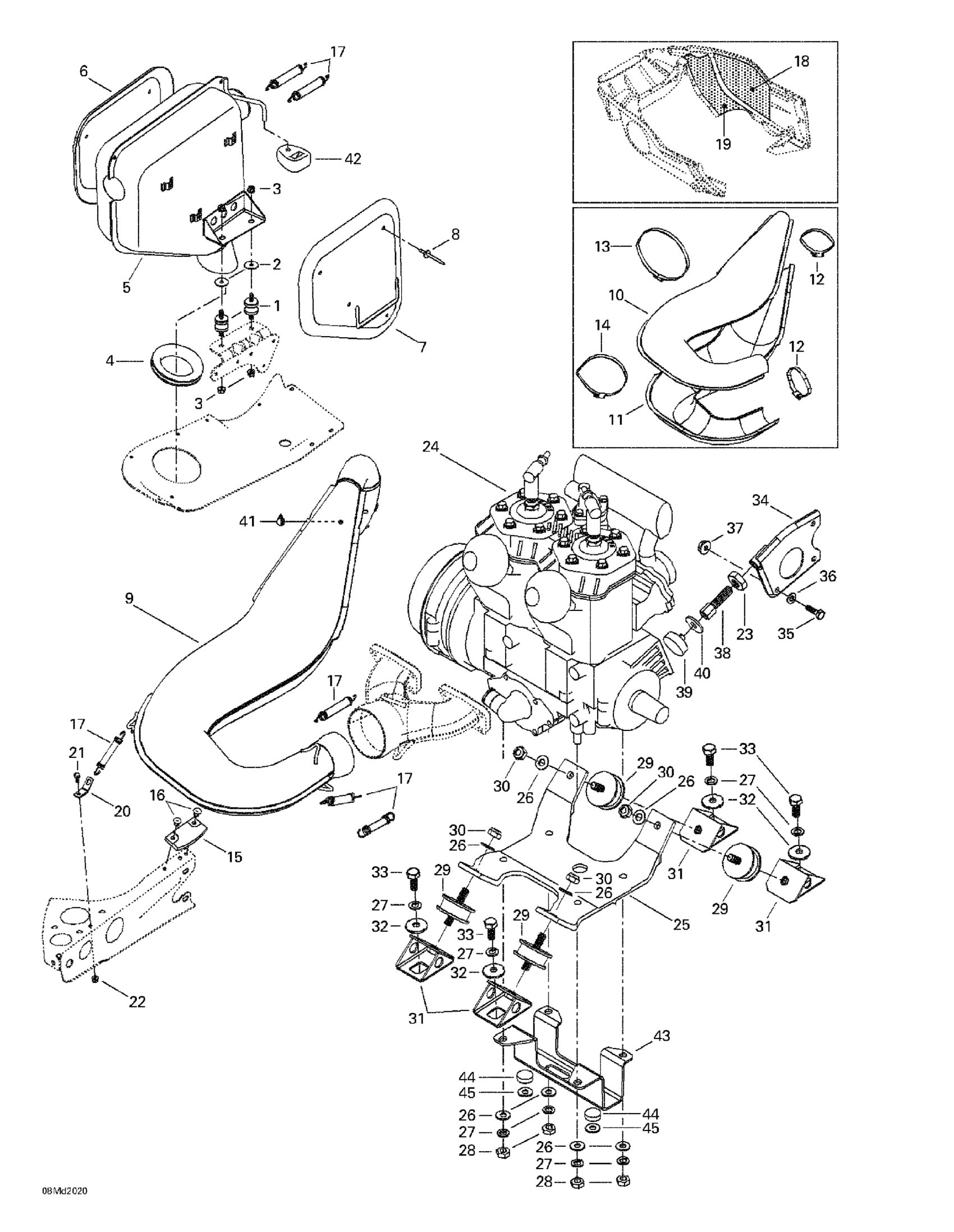 Ski-Doo MX Z X 440 LC, 2000 Engine Support And Muffler Diagram