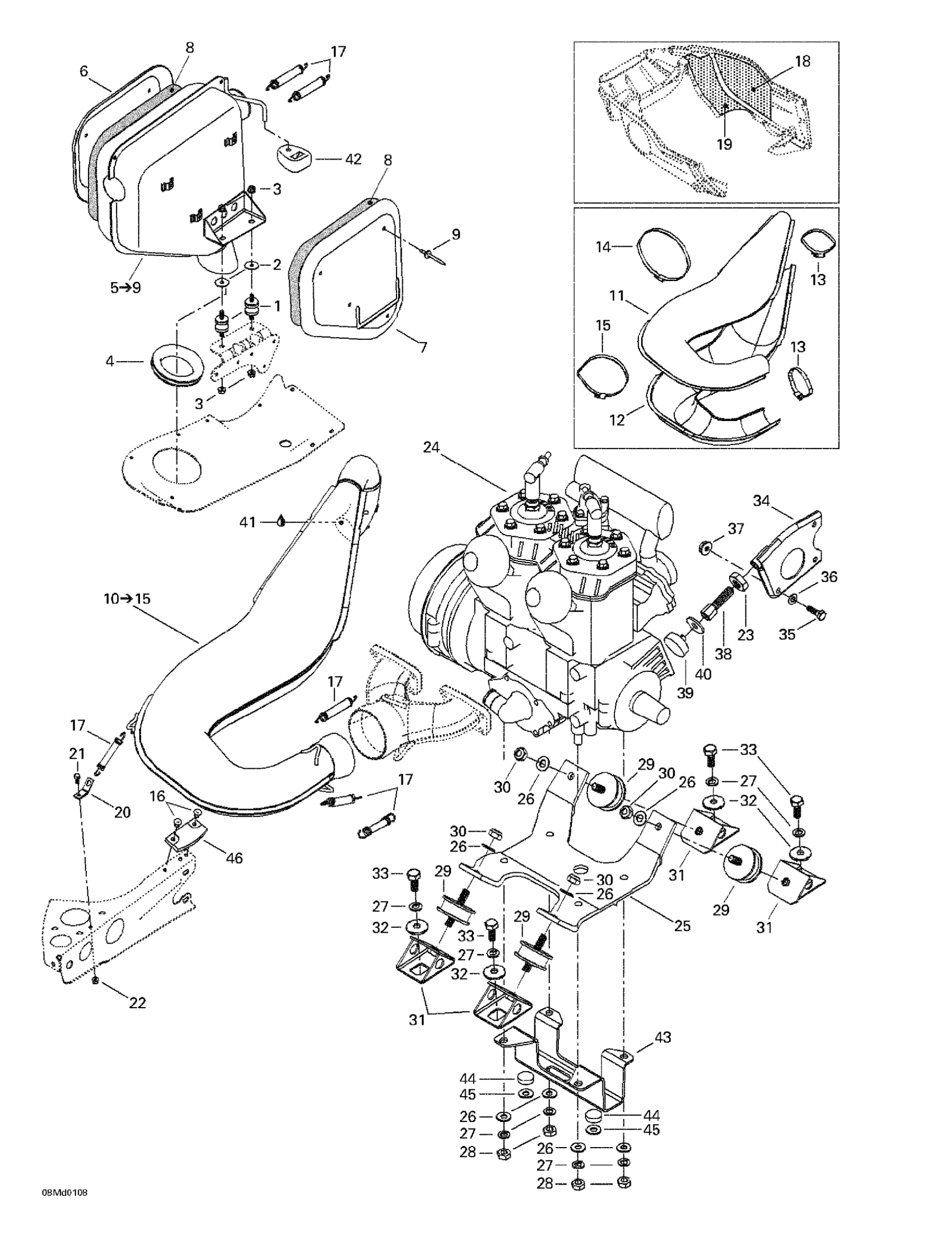 Ski-Doo MX Z X 440 LC, 2001 Engine Support And Muffler Diagram