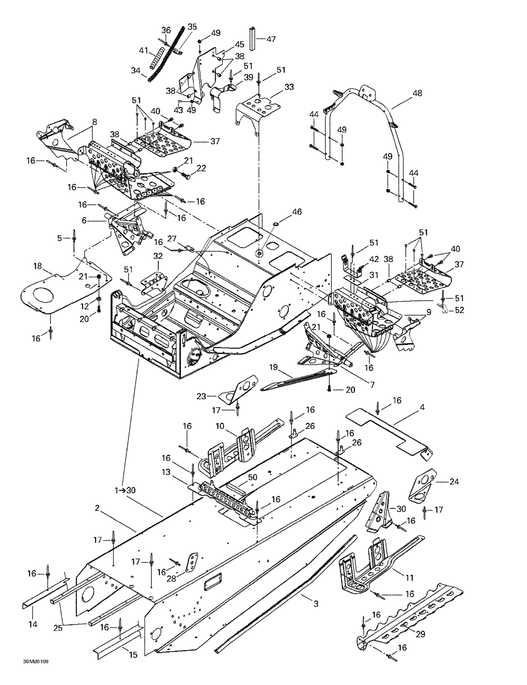 Frame Ass'y | Includes 1 - 30. (RadiatorIncluded)