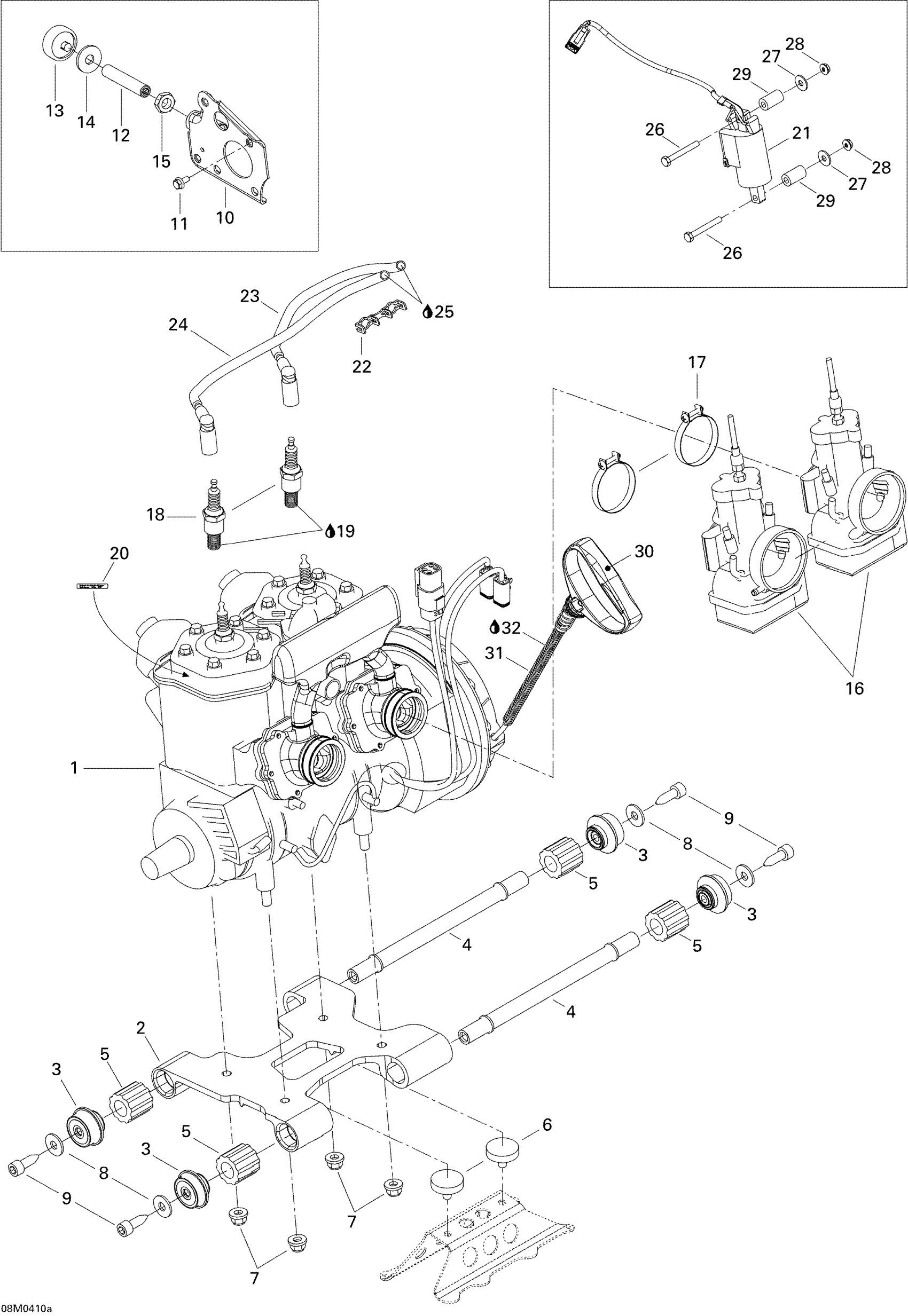 Ski-Doo MX Z X 440 Racing, 2004 Engine Assembly And Support Diagram