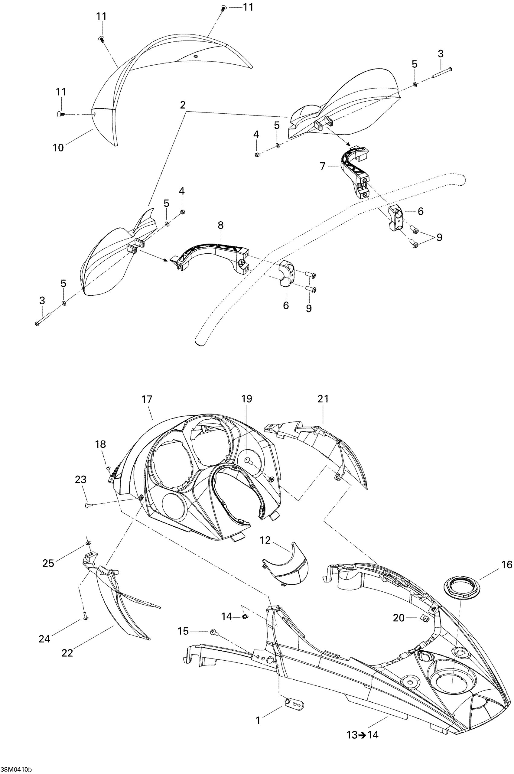 Ski-Doo MX Z X 440 Racing, 2004 Windshield And Console Diagram