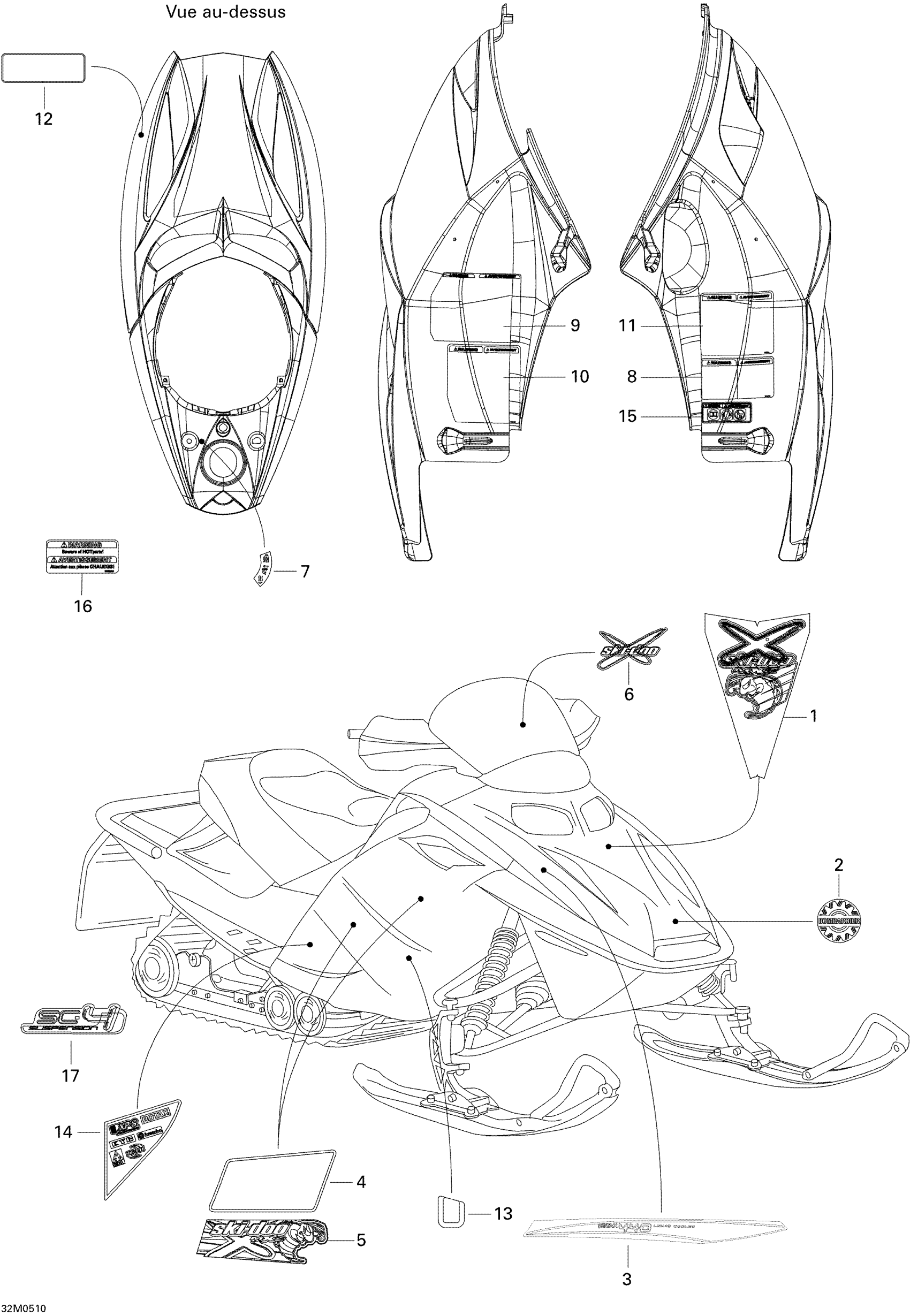 Ski-Doo MX Z X 440 Racing, 2005 Decals Diagram