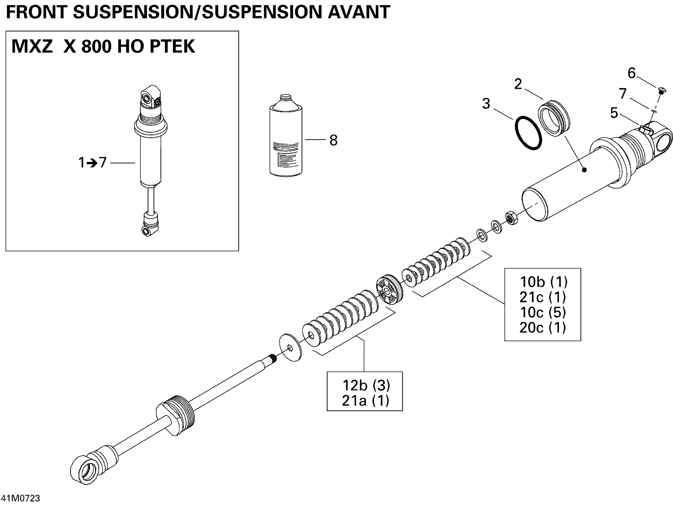 Ski-Doo MX Z X 800 HO PTEK, 2007 Take Apart Shock, Front X Diagram
