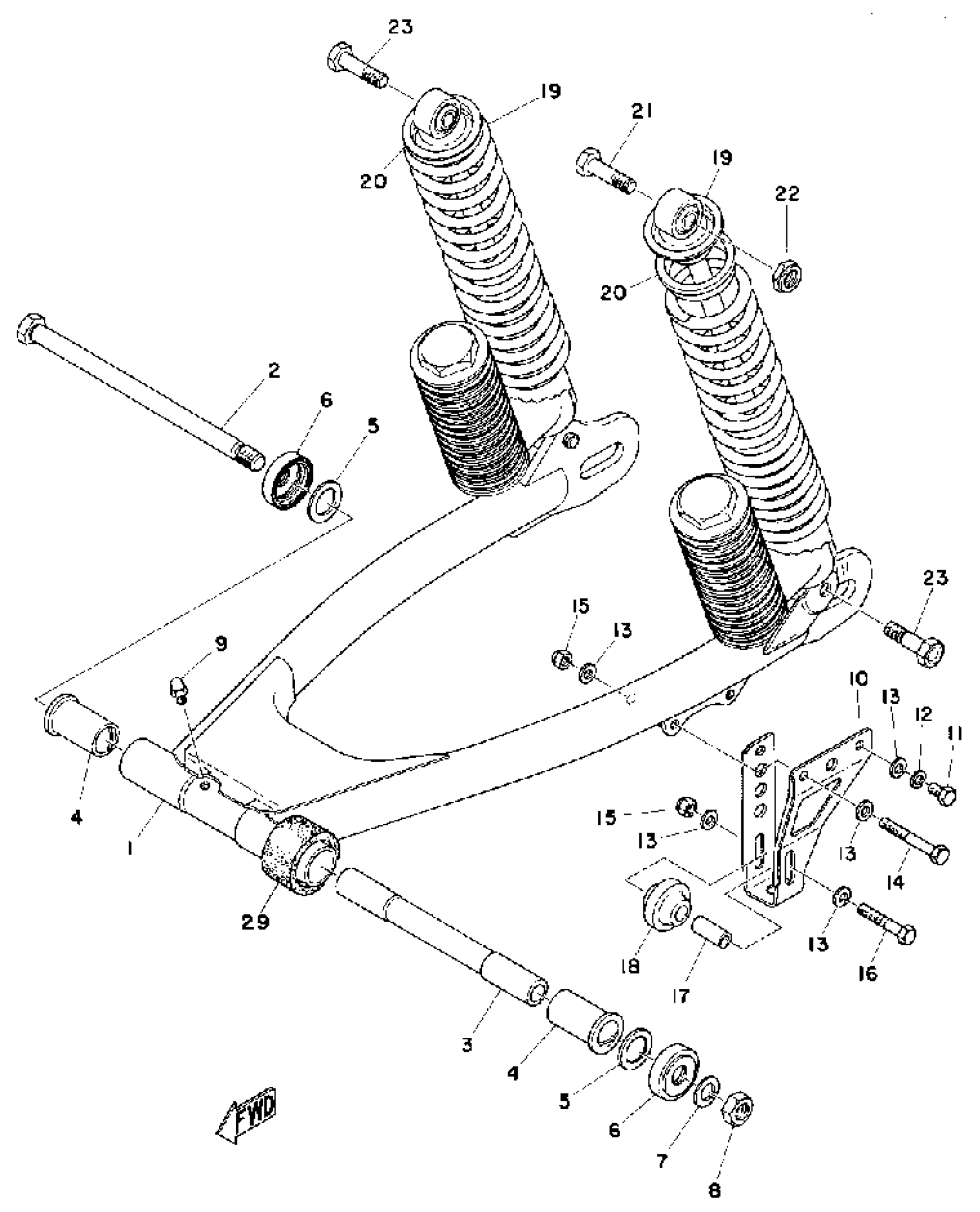 Yamaha MX100A (MX100) 1974 REAR ARM - REAR CUSHION Diagram