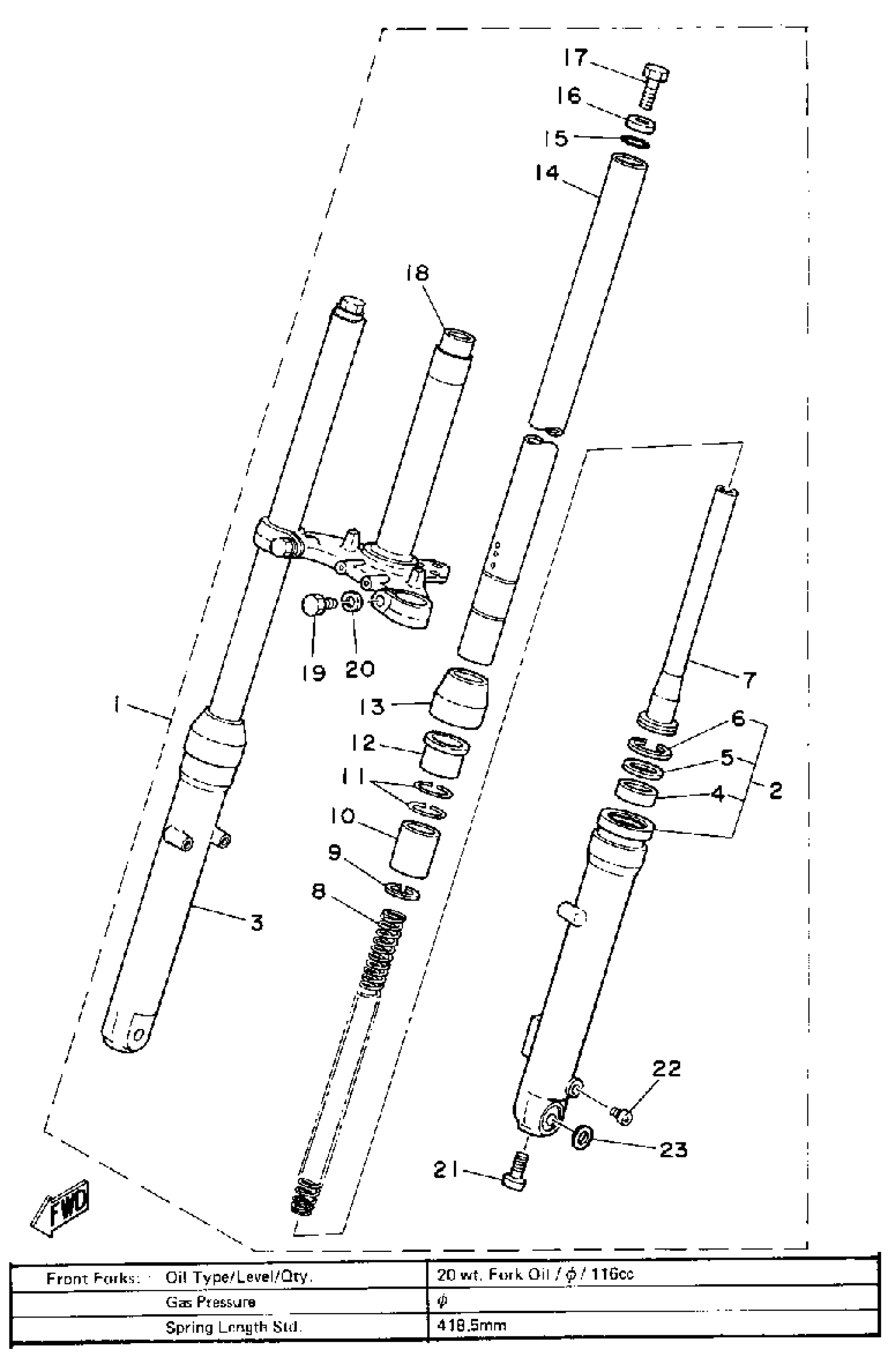 Yamaha MX100G (MX100) 1980 FRONT FORK Diagram