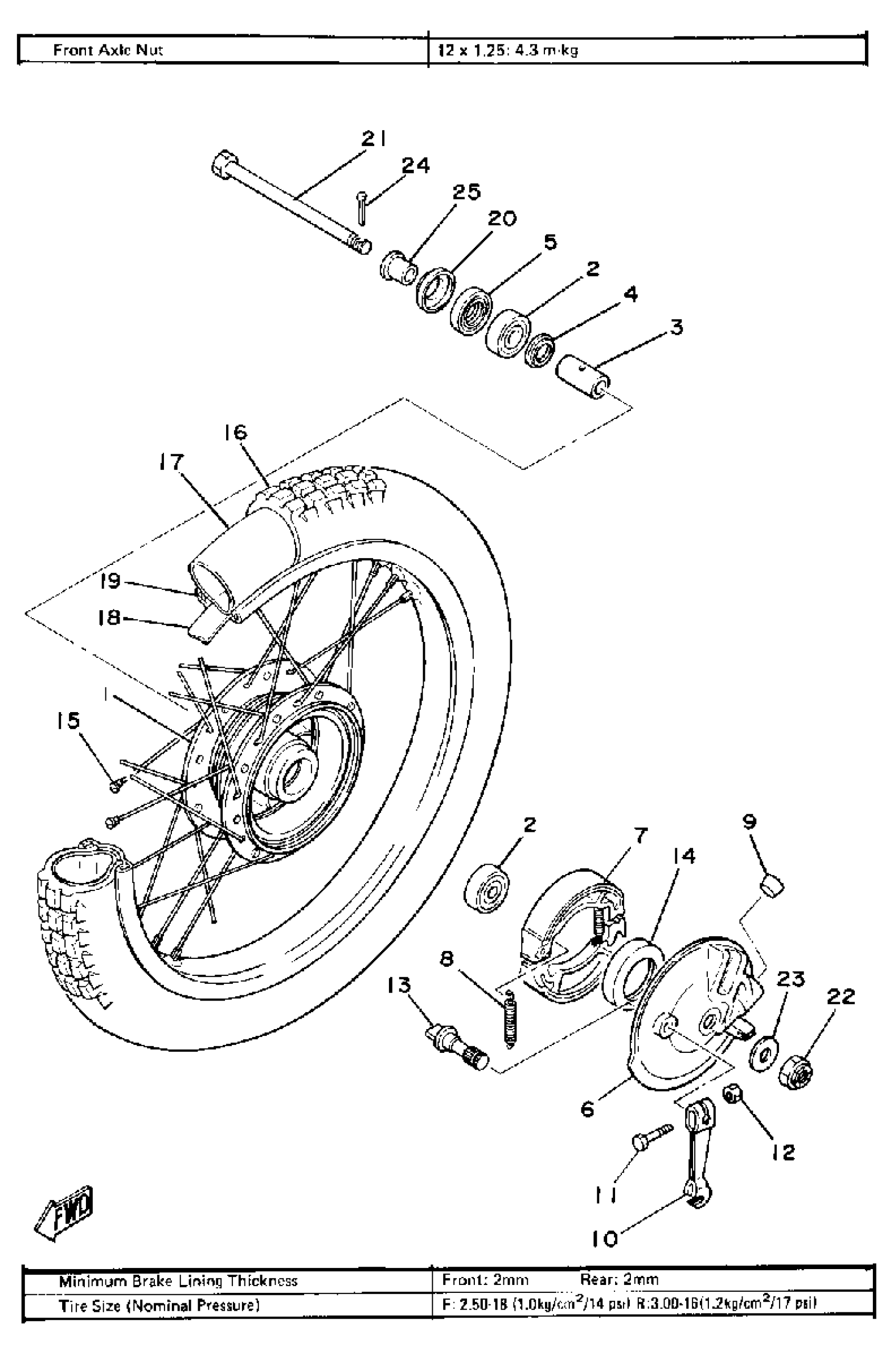 Yamaha MX100G (MX100) 1980 FRONT WHEEL Diagram