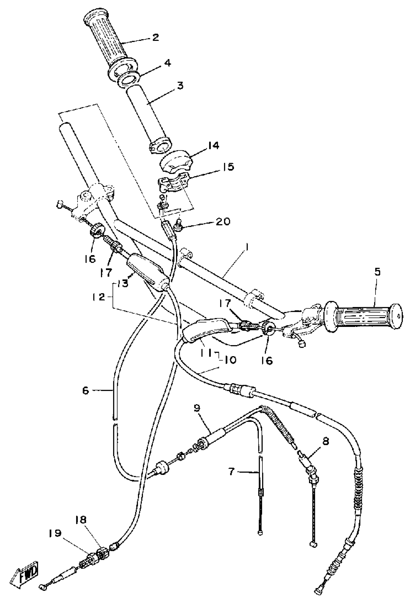 Yamaha MX100G (MX100) 1980 HANDLEBAR - CABLE Diagram