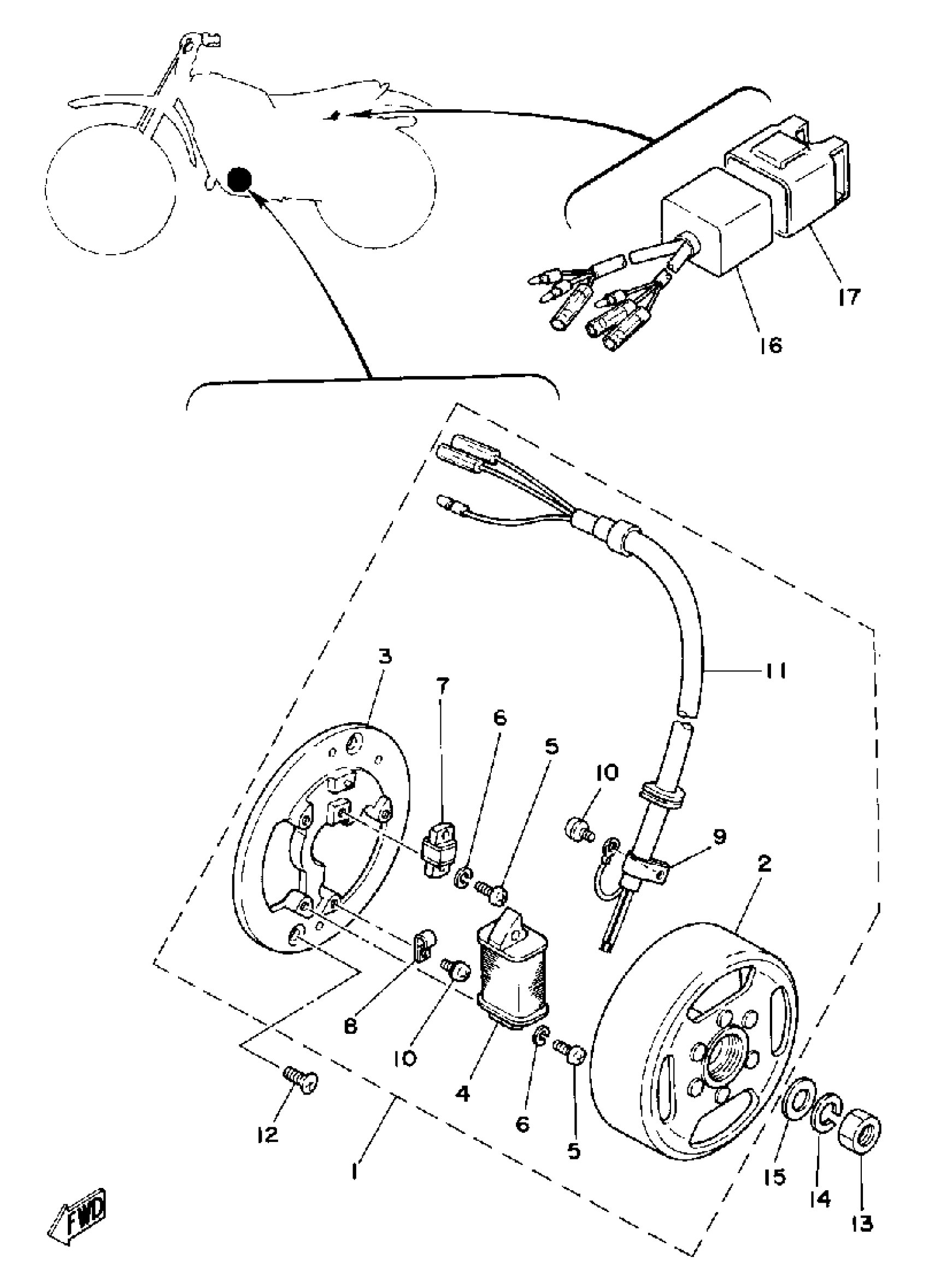 Yamaha MX175H (MX175) 1981 C - D - I - MAGNETO Diagram