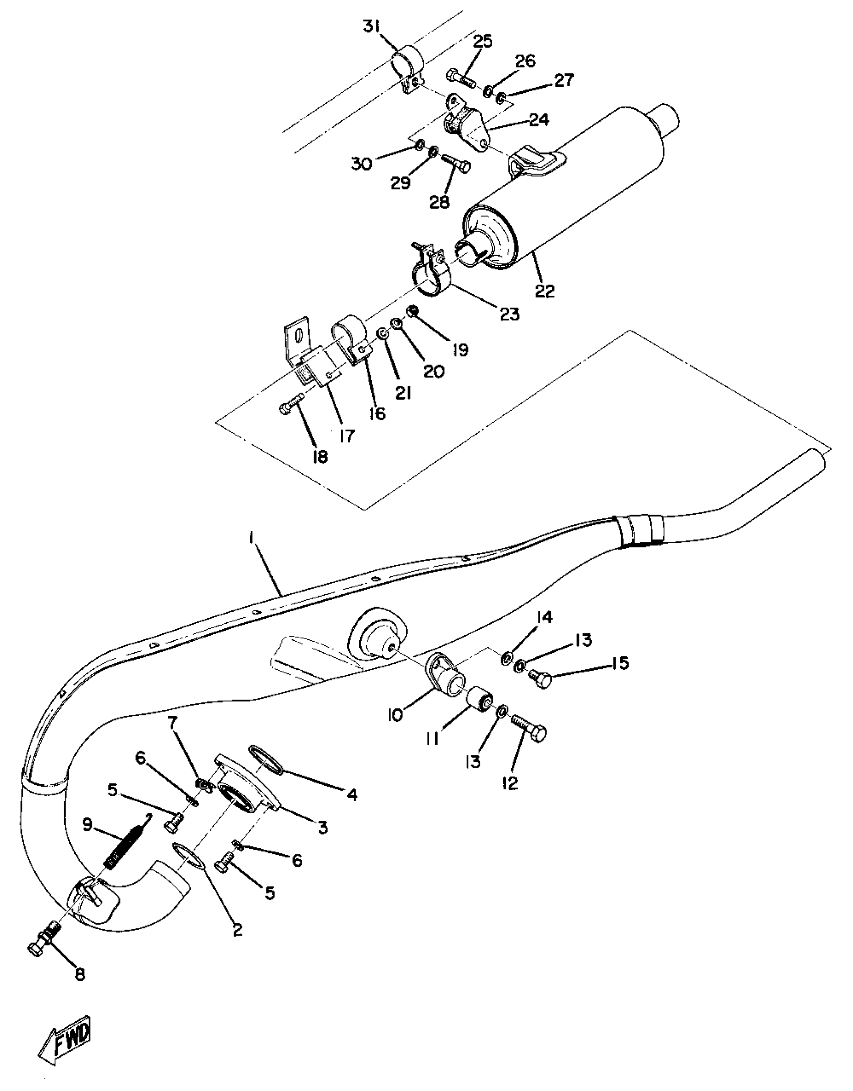 Yamaha MX360 (MX360) 1973 EXHAUST Diagram
