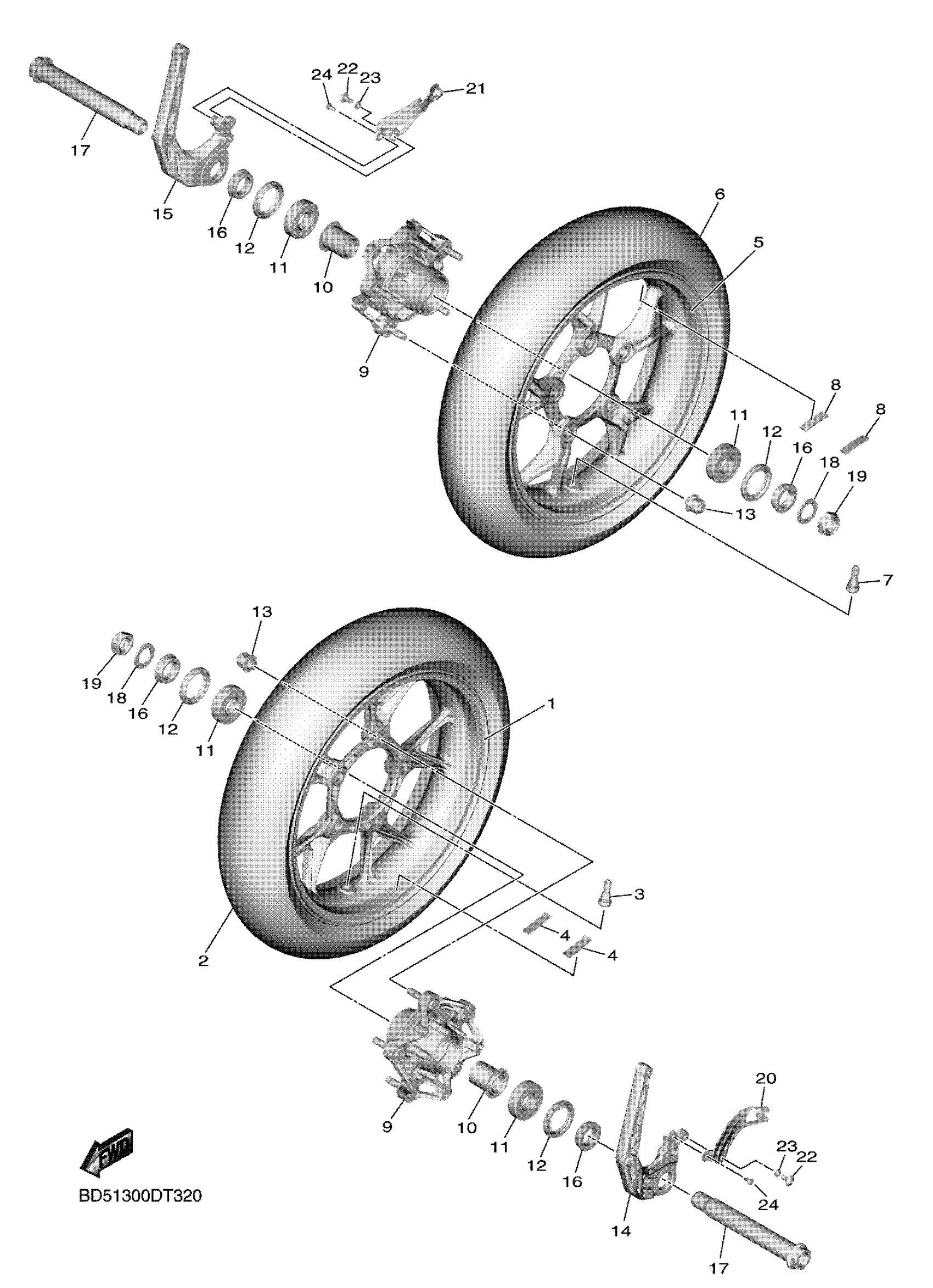 Yamaha MXT9GTKL (NIKEN GT) B5B7 2019 FRONT WHEEL Diagram
