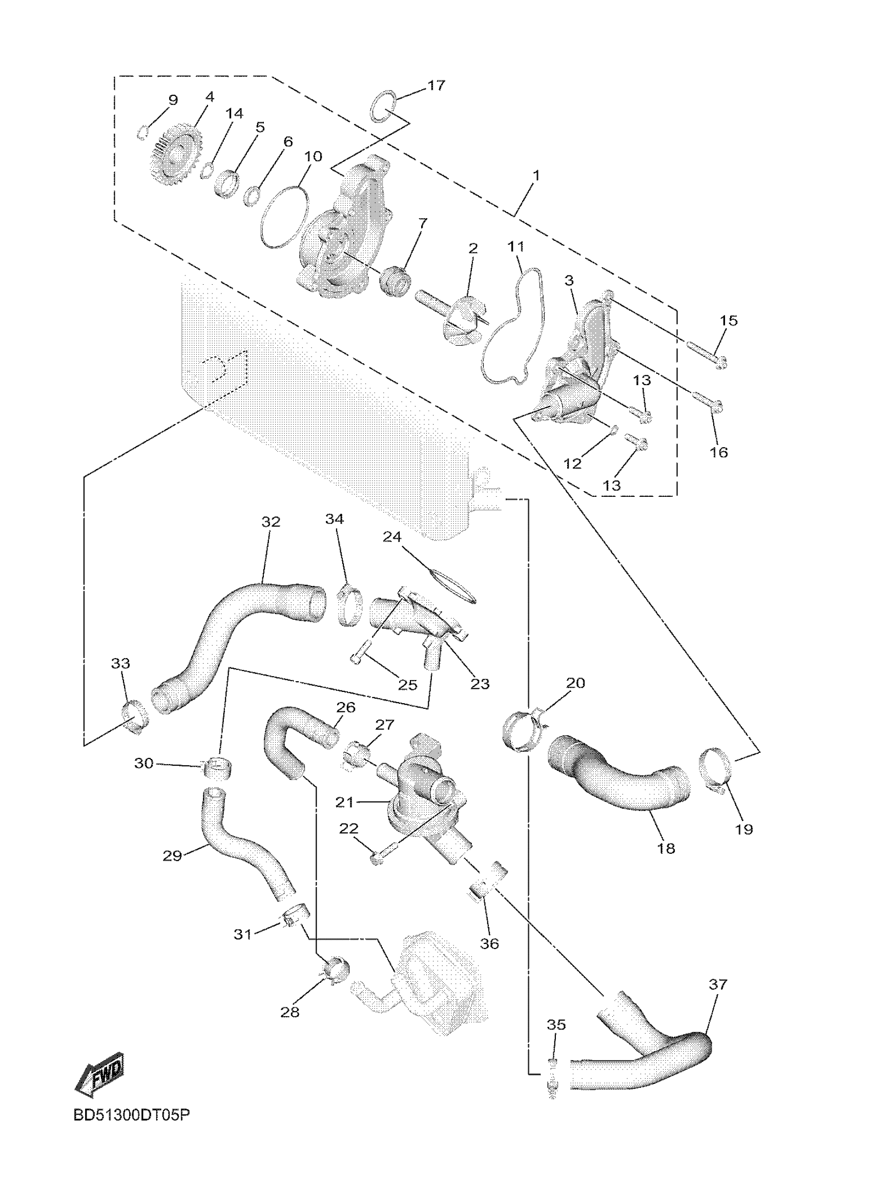 Yamaha MXT9KGY (NIKEN) BD5A 2019 WATER PUMP Diagram